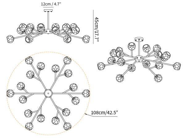 Dimensioni 18 teste: diametro 108 cm x H 45 cm / ∅ 42,5 "x H 17,7"