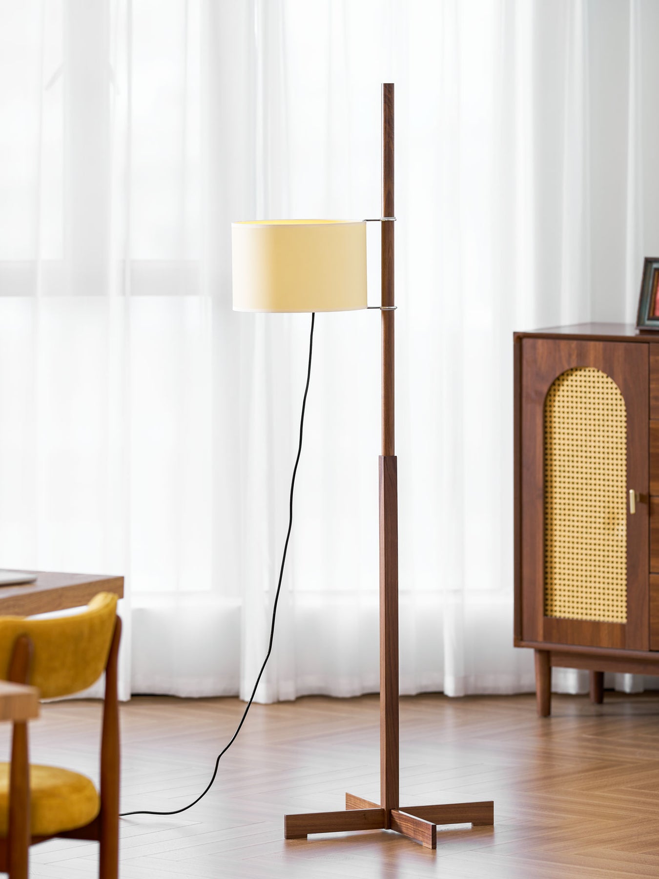 Experience functional efficiency and timeless beauty with the Wood Tmm Floor Lamp. Its simple yet elegant design features easily-assembled components and high-quality materials, ensuring a long lifespan. The perfect addition to any space.