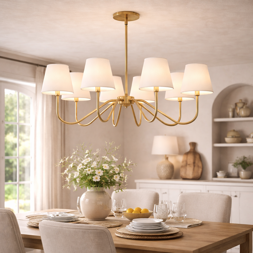 Standard Ceilings (9-10 feet): Chandeliers and pendant lights are ideal for rooms with standard ceiling heights, especially in dining rooms and entryways. Ensure the bottom of the fixture hangs at least 7 feet from the floor.