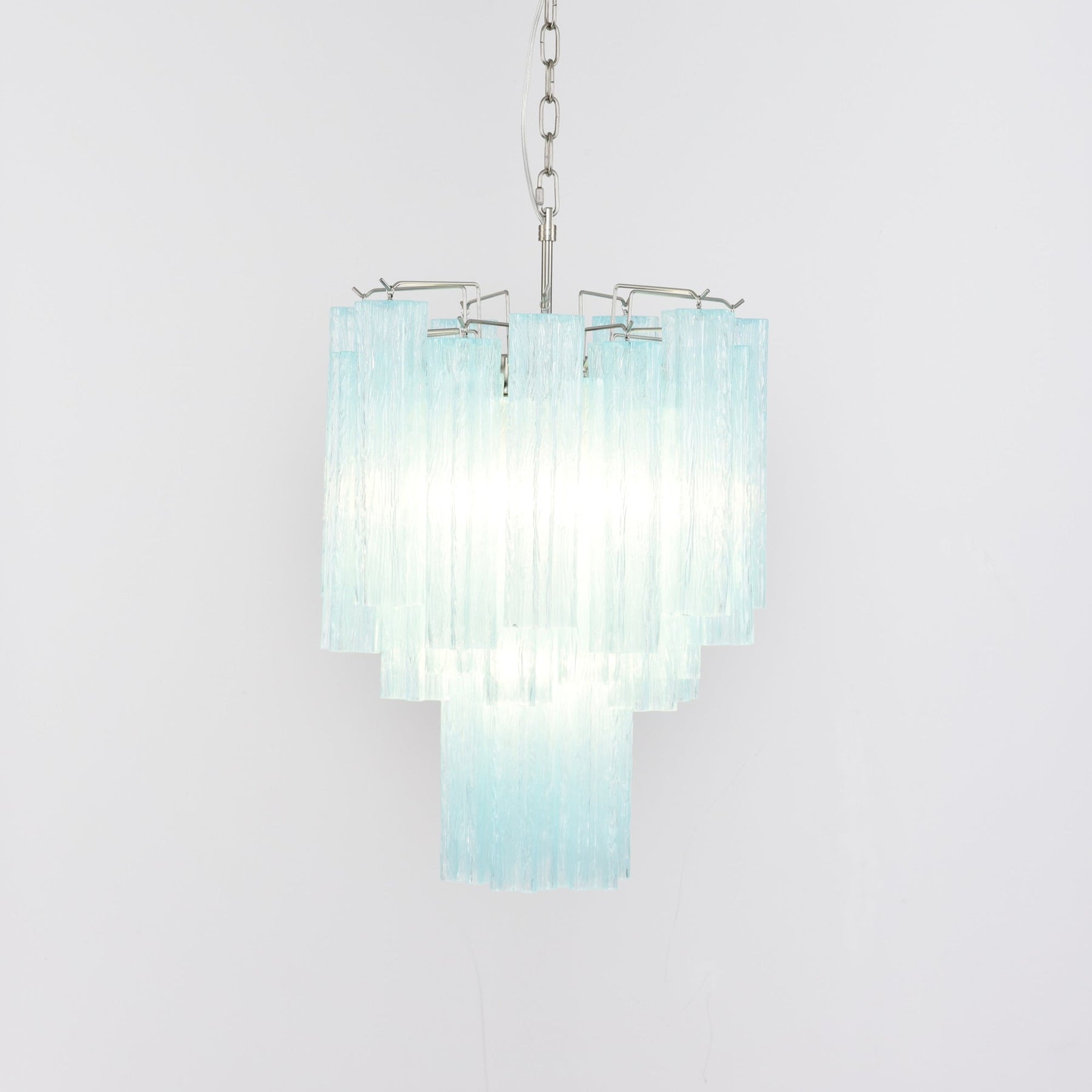 Dive into coastal serenity with the Azzura Murano Chandelier. Featuring hand-crafted glass tubes in a refreshing ocean blue, this layered piece brings an ethereal glow and artisanal beauty to dining rooms, entryways, or any space craving a breath of elegance.