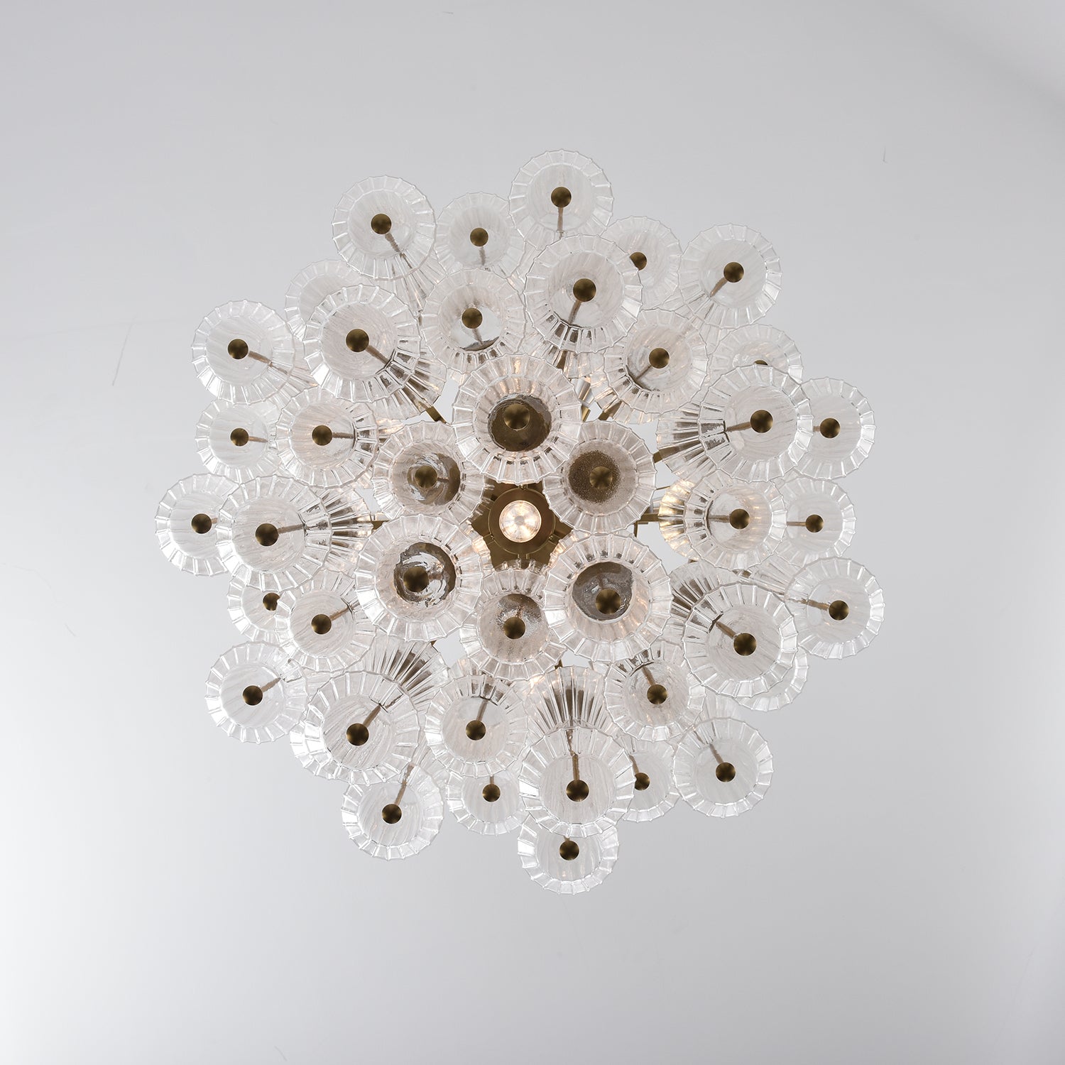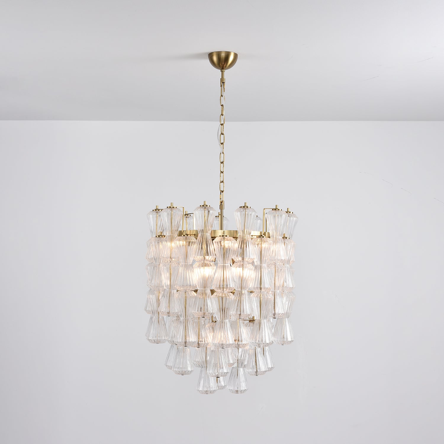 Inspired by floral silhouettes and classic Italian elegance, the Florenzia Chandelier features hand-blown Murano glass elements in a symmetrical cascade. Each glass piece resembles a refined flower bud, creating a luminous composition that blooms with light.
