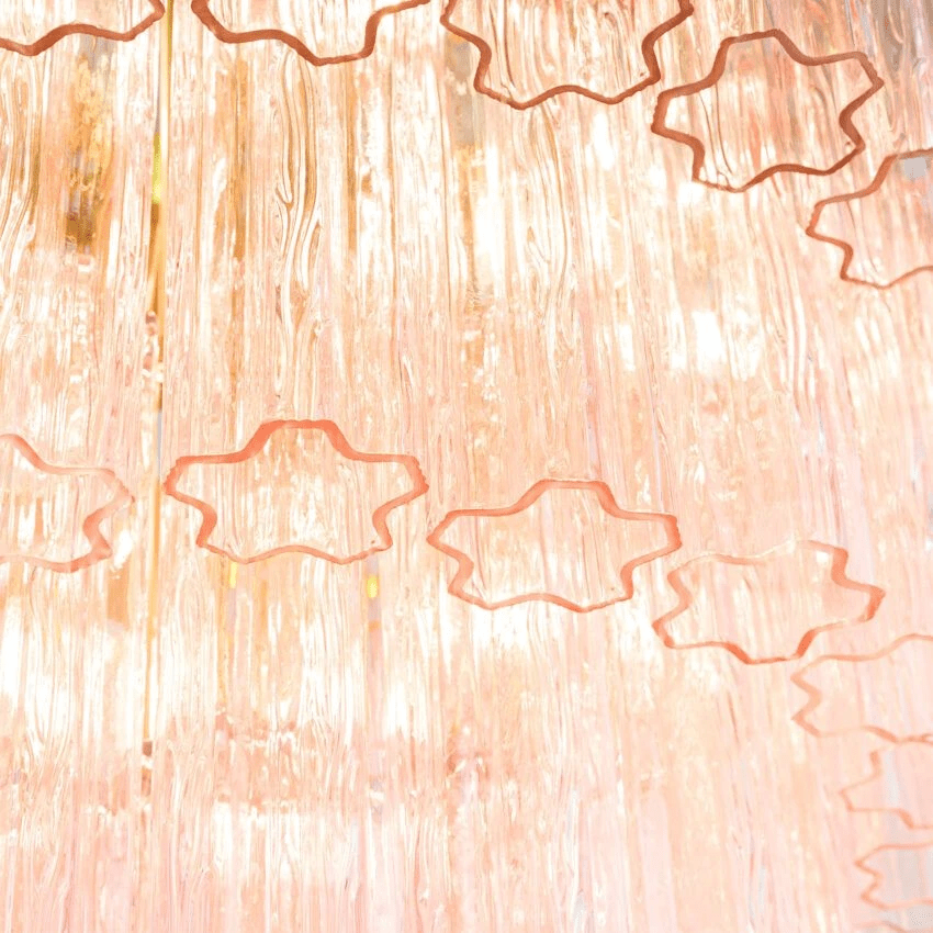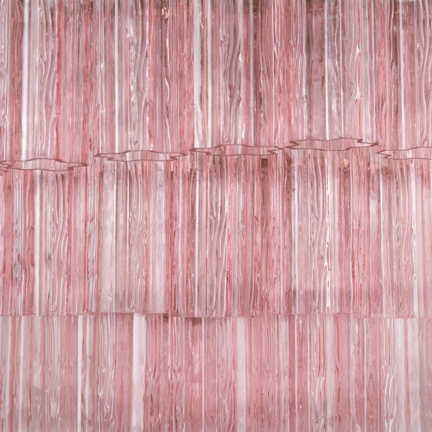 The Large Treviso Chandelier features an elegant four-tier design with meticulously arranged fluted glass tubes suspended from a refined Satin Brass frame. This mid-century inspired lighting fixture offers sophisticated illumination in three distinctive glass options: rich Smoked Quartz, delicate blush Pink, or classic Clear. For spaces with height constraints, consider our Small or Medium Treviso alternatives, while our Grande Treviso provides a more commanding presence for expansive areas.