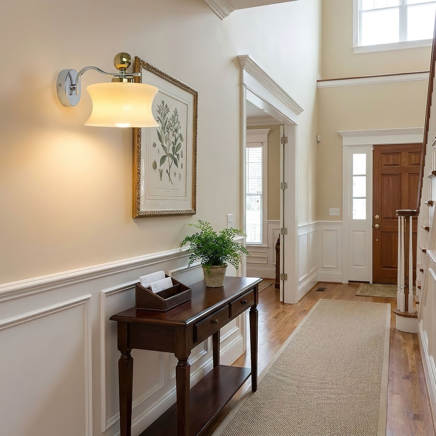 • Chandeliers: The entryway is the perfect spot for a statement chandelier. Use the length + width formula to determine the diameter, and ensure the fixture hangs at least 7 feet from the floor to allow clearance.