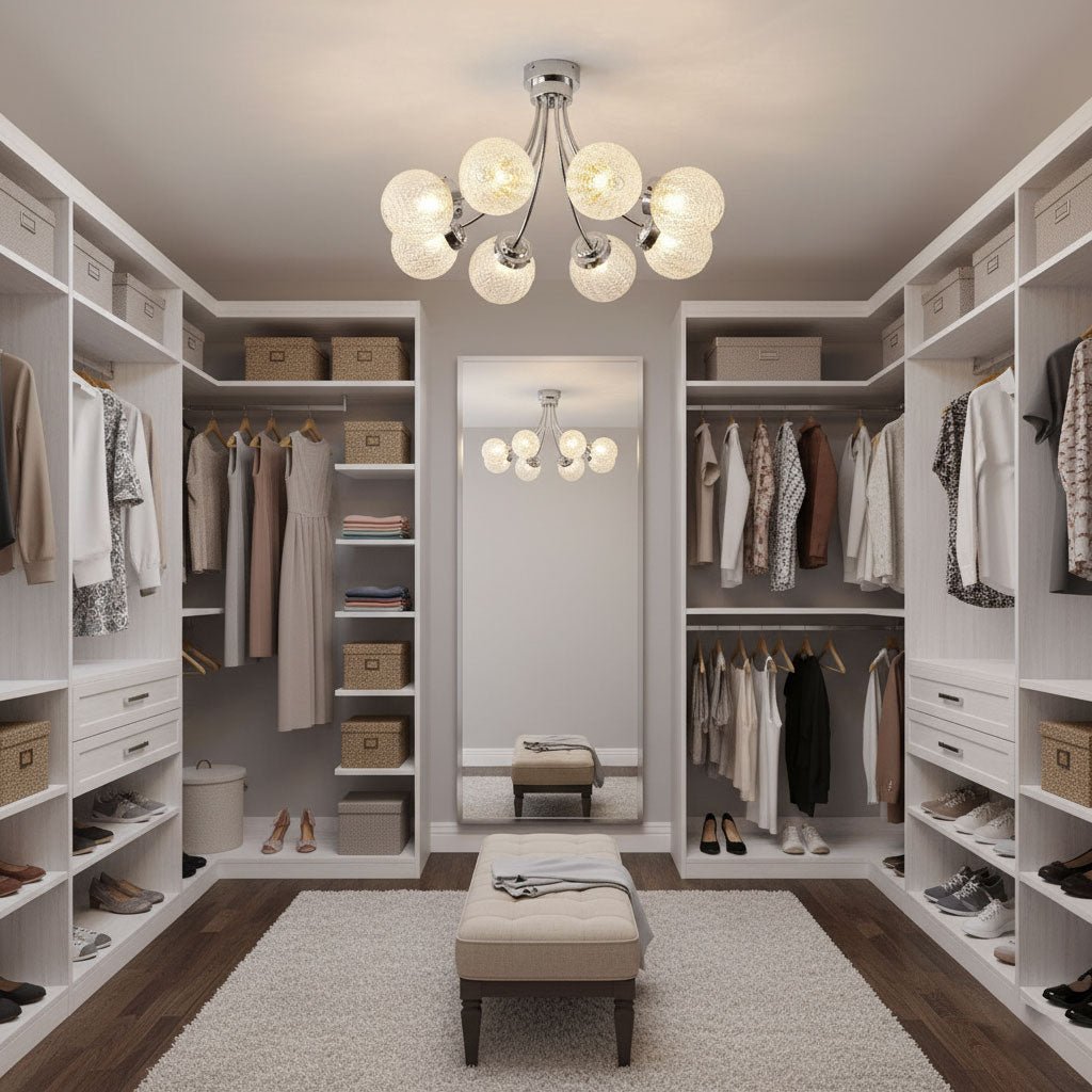 Low Ceilings (8 feet or less): Opt for flush mount or semi-flush mount fixtures, which sit close to the ceiling and provide ample lighting without taking up too much visual space.