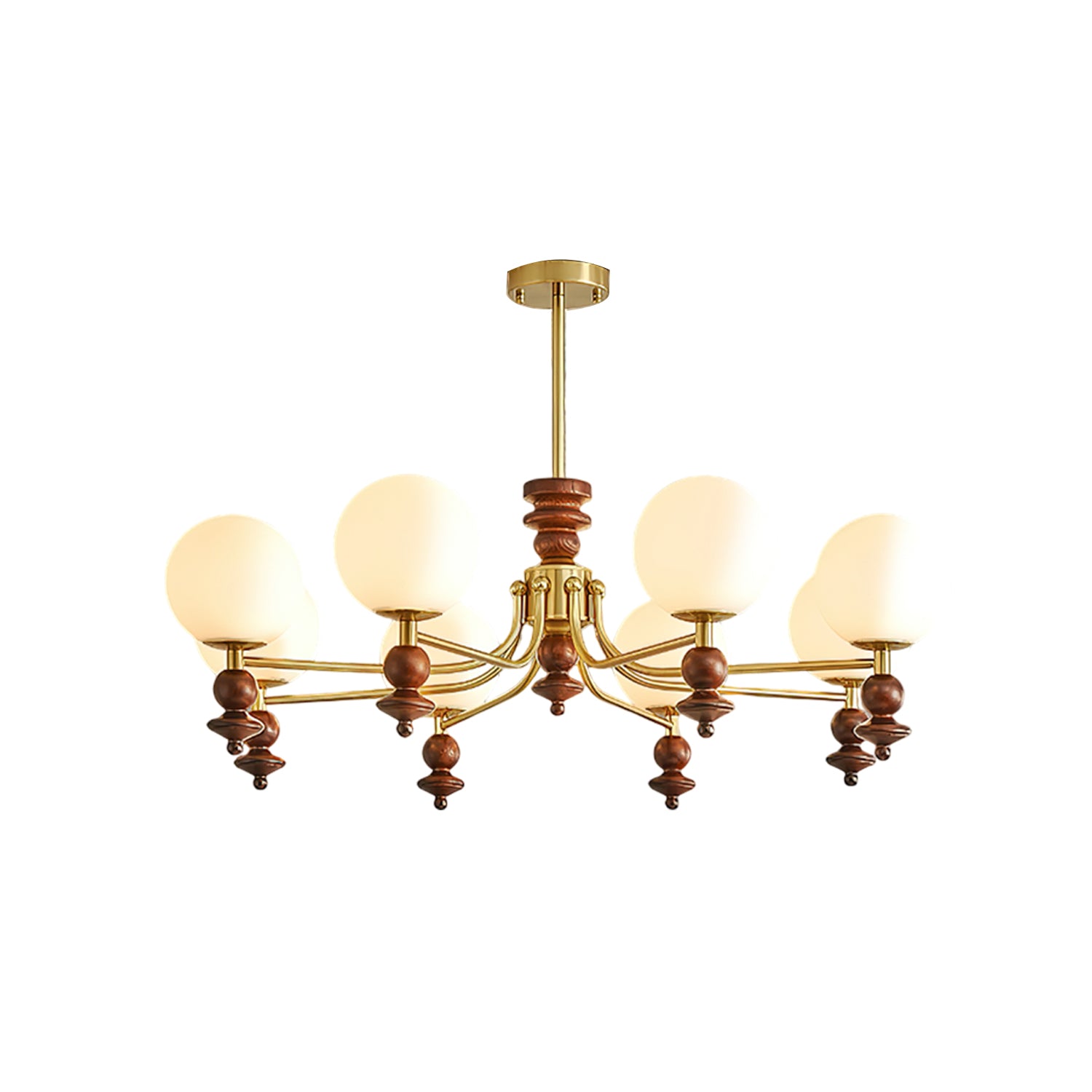 The Lunaris Chandelier from Vakkerlight embodies refined elegance with its smooth white glass globes and gracefully curved metal arms. Its balanced design casts a soft, welcoming glow while maintaining a clean, sculptural presence. Perfect for dining areas, living rooms, or entryways, this chandelier adds a timeless touch of sophistication to any space.