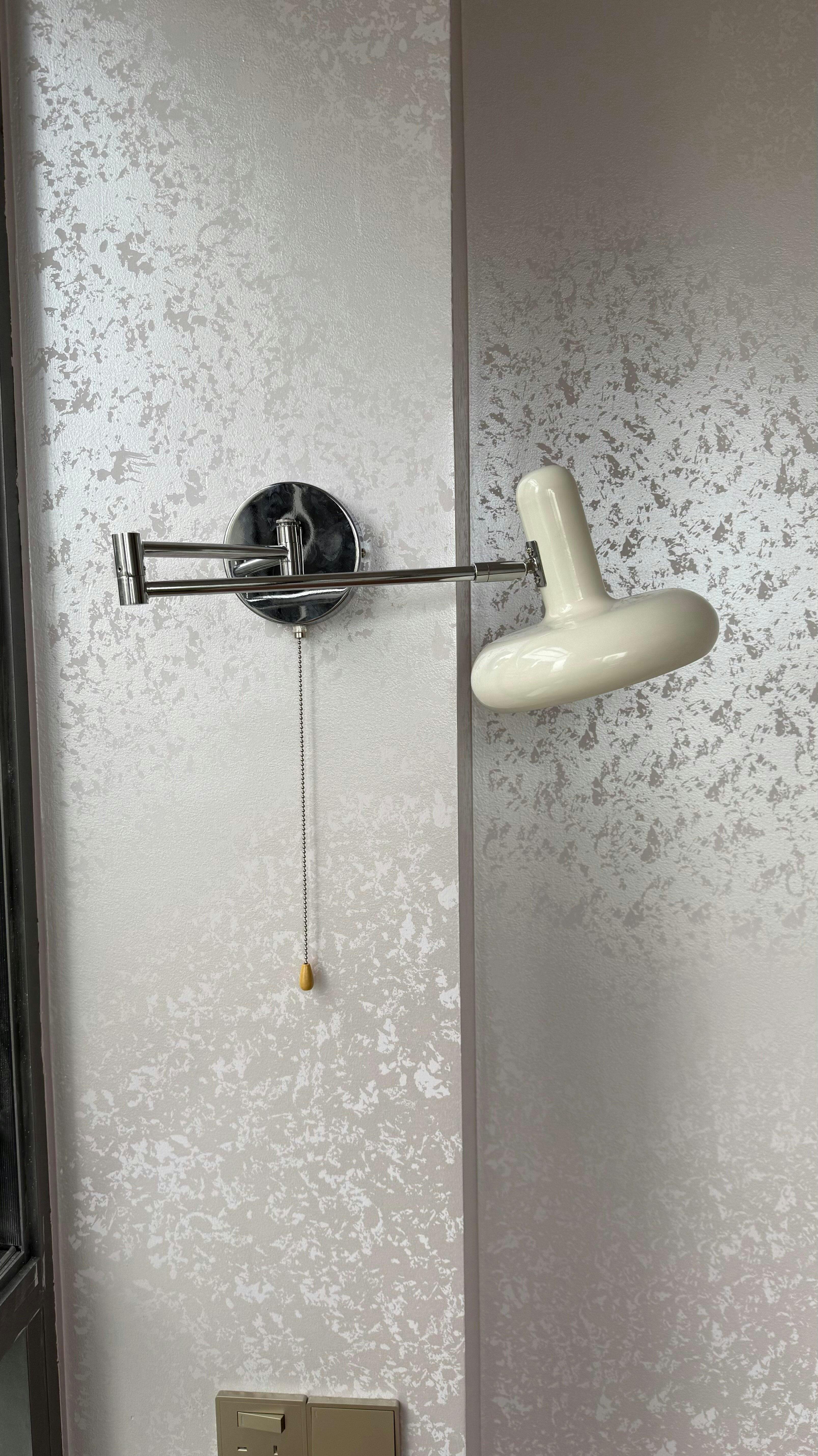 It is held by a round wall bracket. The light source, which is placed in the E27 socket according to your own ideas, is surrounded by a arm lever and round lampshade that can be flexibly oriented up and down, so that the lighting can be switched on as needed. This wall lamp with cream color finish is ideal as a reading lamp.