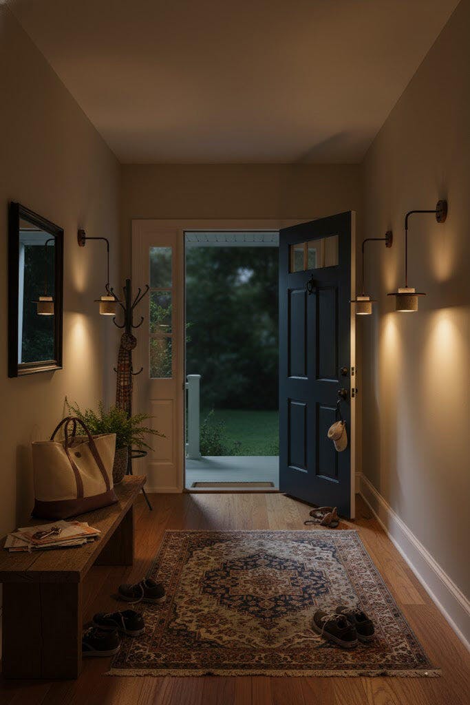 Hallway Lighting: Recessed or flush mount lights spaced evenly (every 8-10 feet) create a well-lit and inviting space.