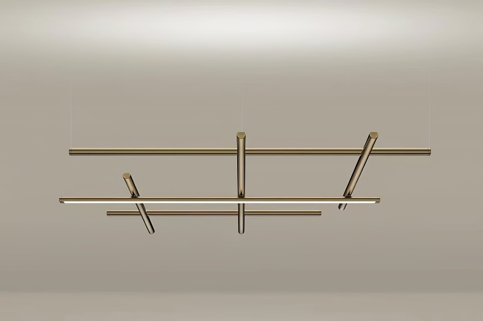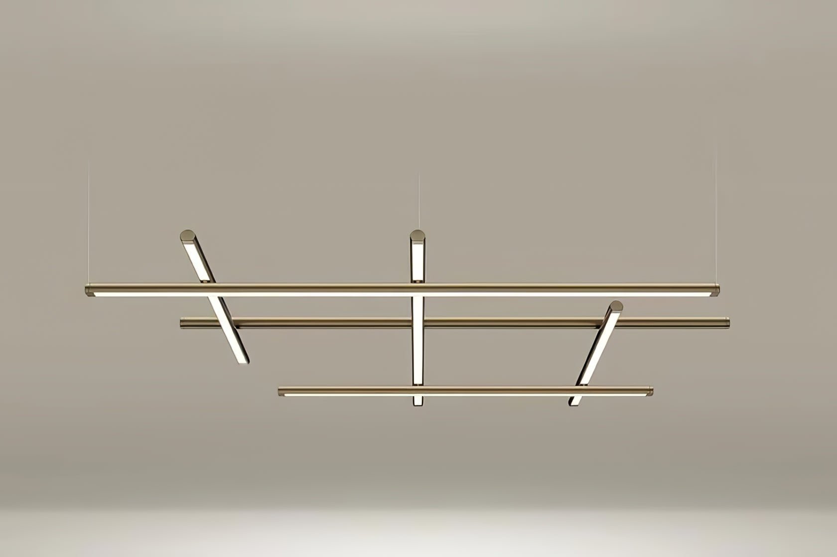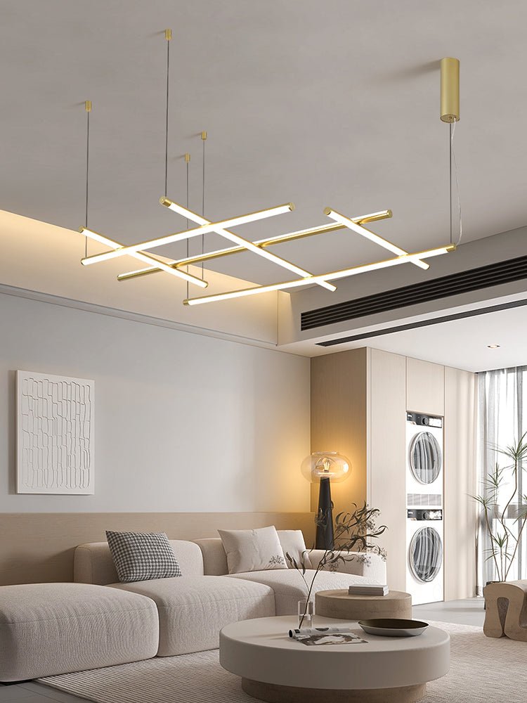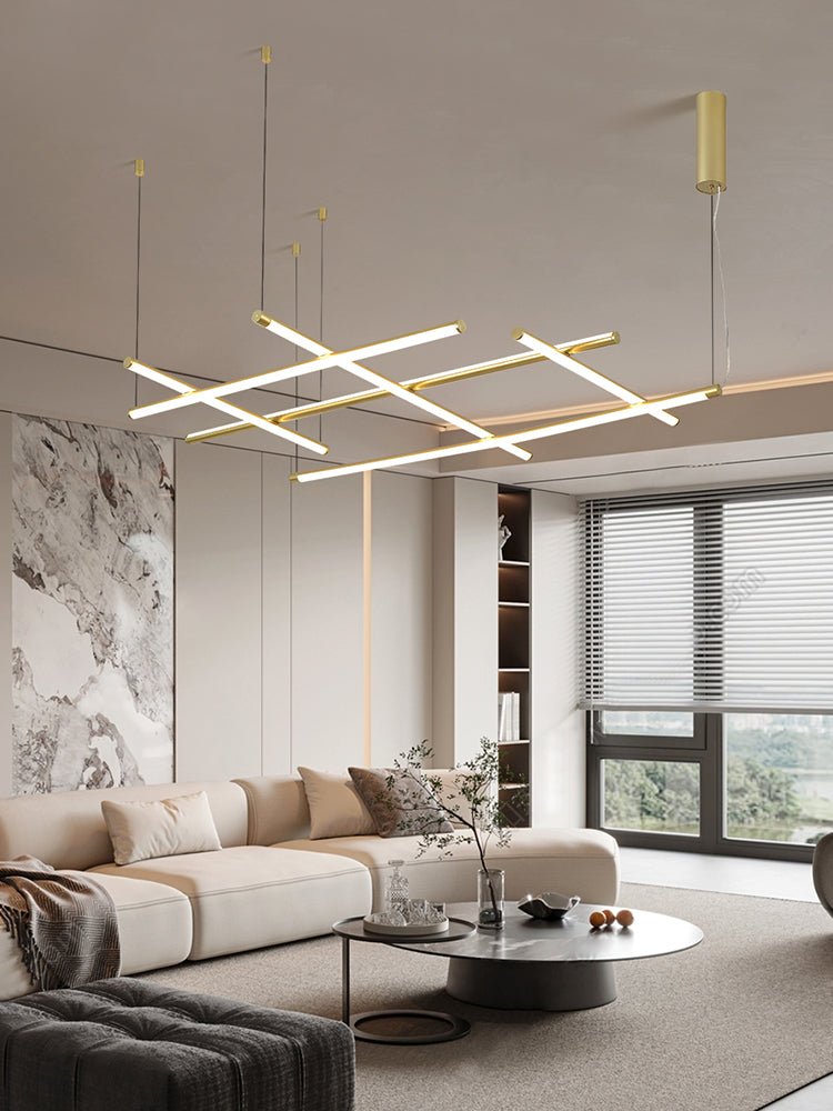 This pendant lamp features an intricate arrangement of linear elements intersecting in a geometric grid pattern. Suspended by thin cables, it creates a visually striking, modern - art - inspired look. Ideal for dining rooms, living areas, or entryways, it provides ambient lighting while adding a contemporary aesthetic to enhance the space's decor.