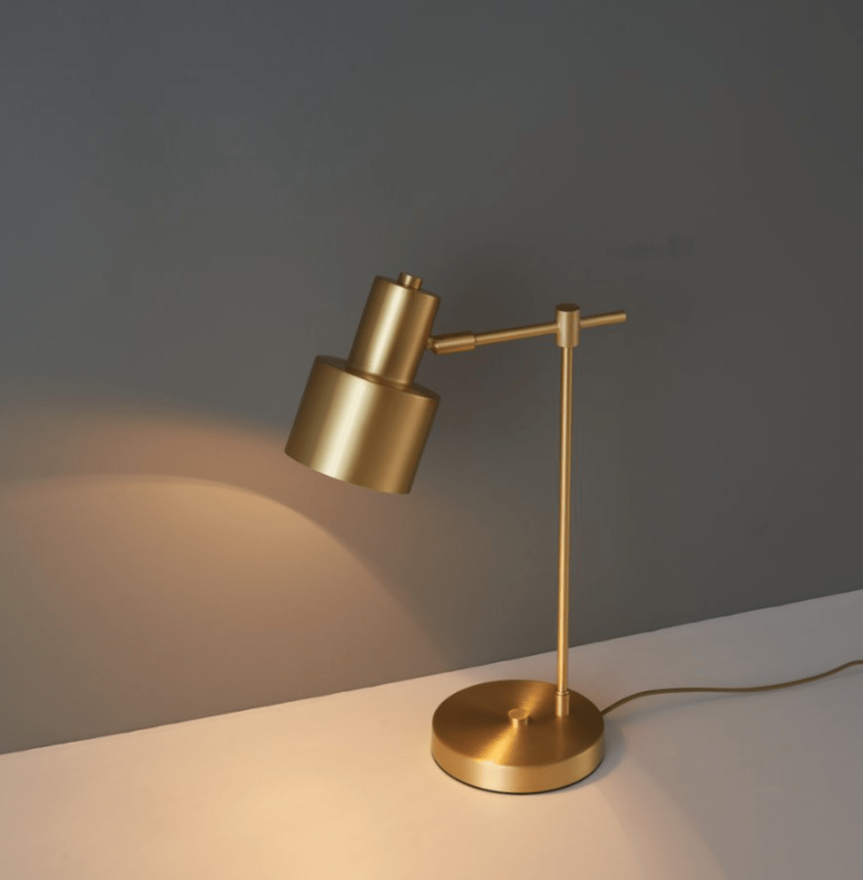 Illumina il tuo spazio abitativo con questa lampada da tavolo semplice ma audace. È dotato di una bella finitura oro lucido con corpo nero. L'accento perfetto per il tuo ufficio, camera da letto, foyer o soggiorno.