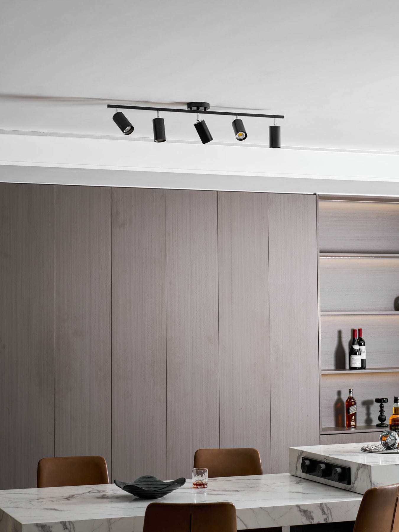 Pendants Over Island: These provide crucial task lighting for food prep and should hang 32-36 inches above the surface. Make sure that each pendant is about 1/4 the length of the island to provide sufficient coverage without overwhelming the space.