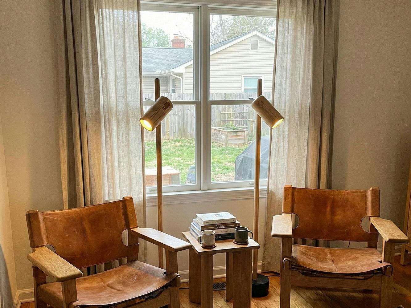 With its simple and functional design, the Spotlight Wood Floor Lamp is inspired by natural wood elements and industrial spotlights. Its adjustable head and solid base make it the perfect combination of practicality and style, ideal for focused lighting in modern interiors.