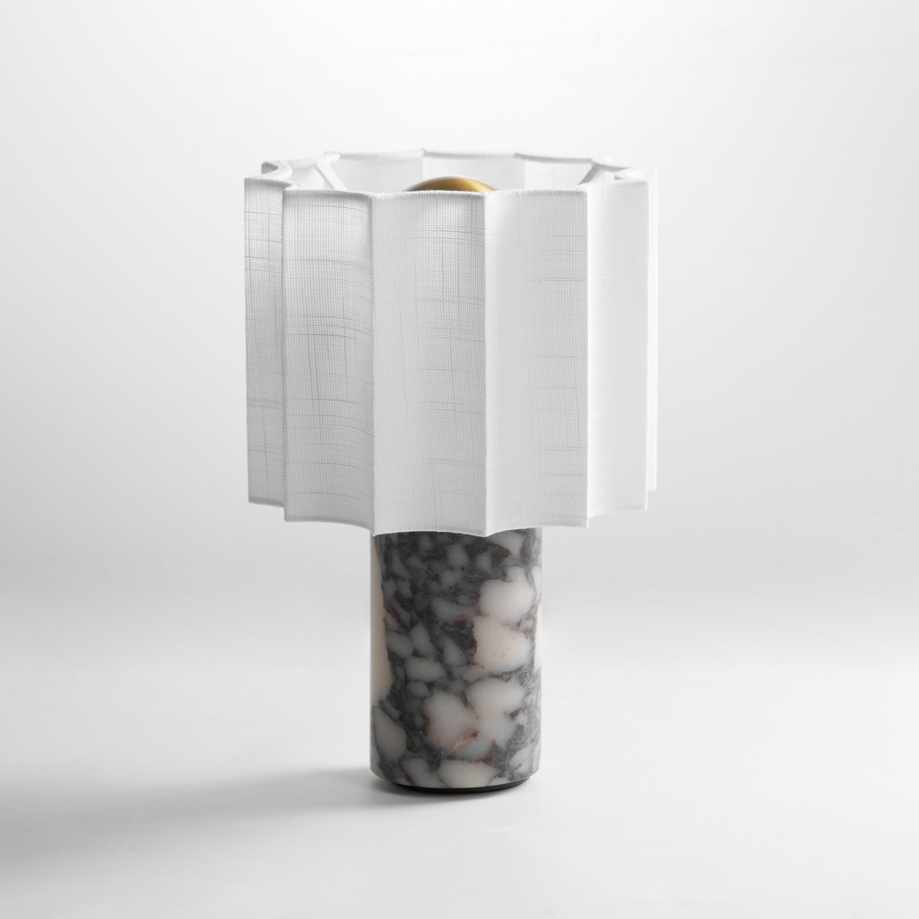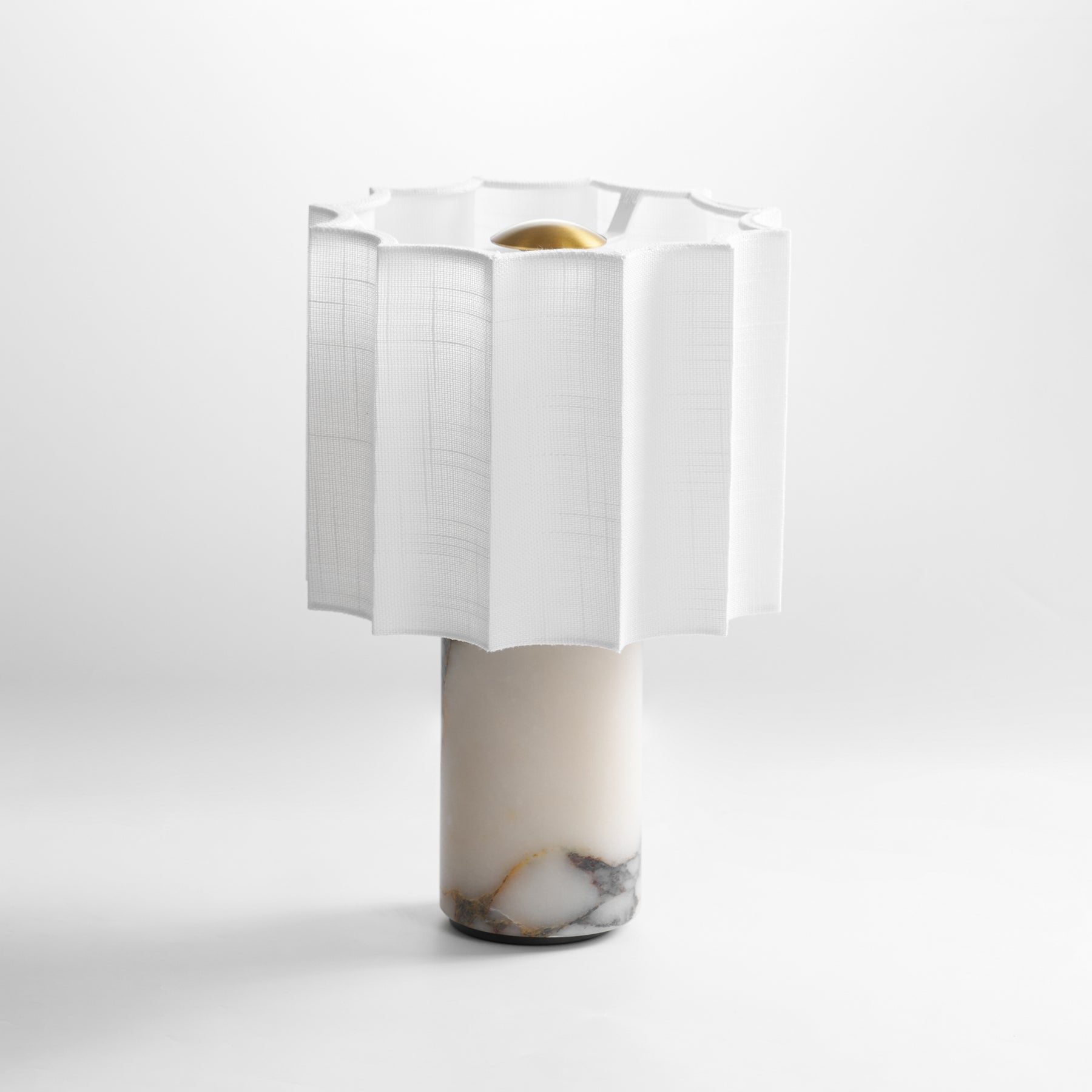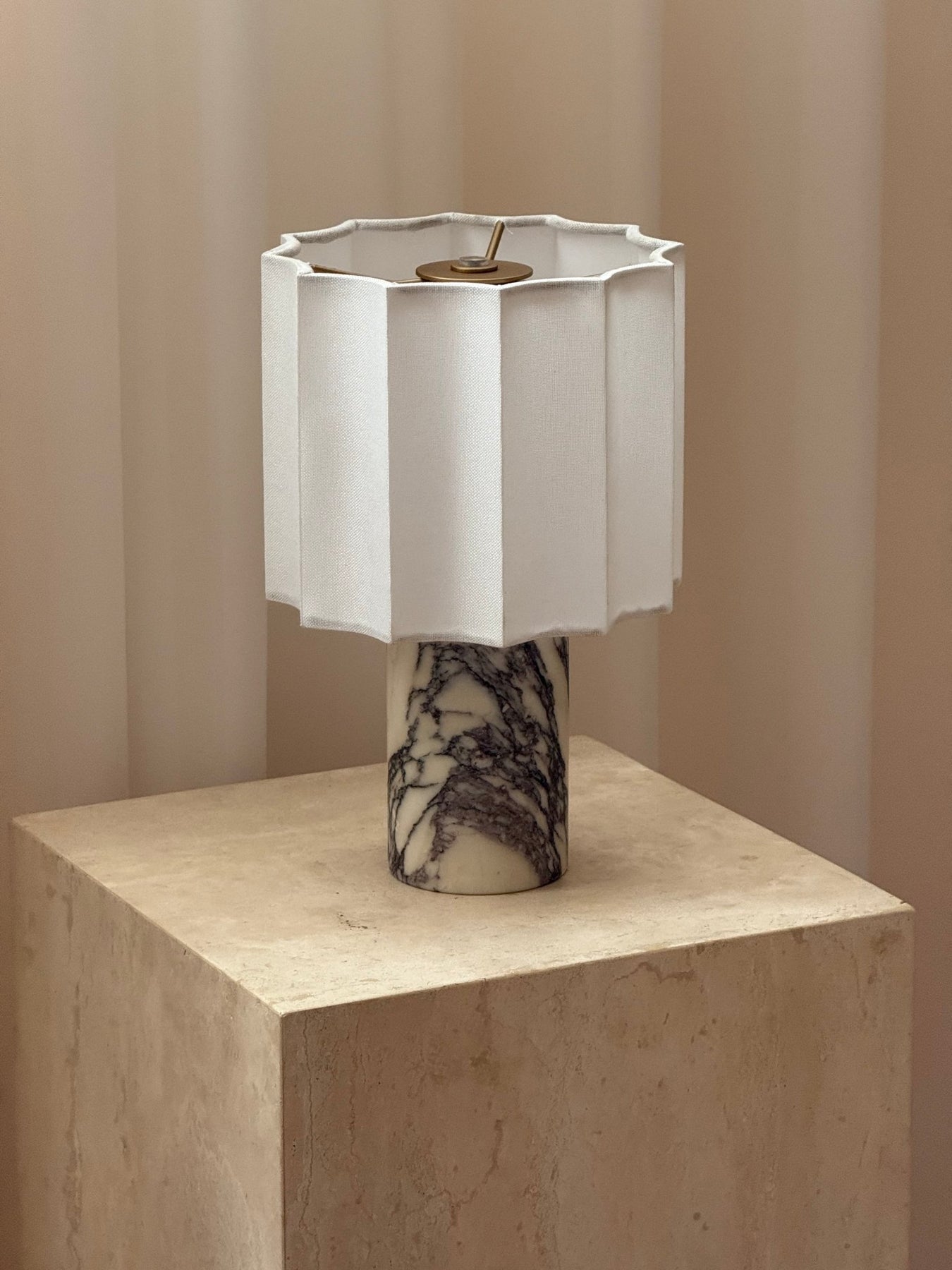 The Orbis Veil Table Lamp by Vakkerlight blends sculptural elegance with timeless materials. Featuring a smooth cylindrical base crafted from natural veined marble, each lamp is uniquely patterned by nature. The structured fabric shade, with its architectural pleats, softens the light while echoing the clean geometry of modern interiors. Perfect for bedside tables, reading nooks, or minimalist living spaces, this lamp provides a harmonious balance of form and function.