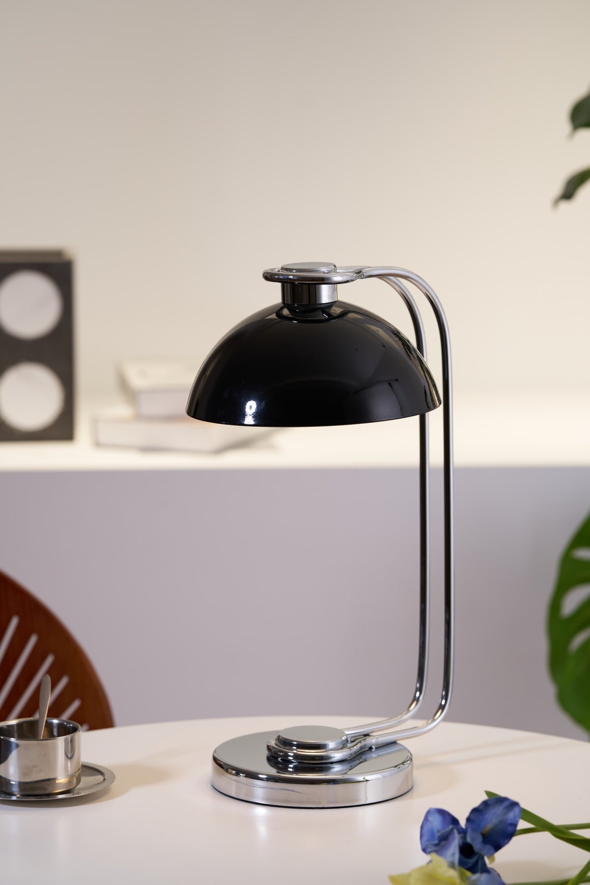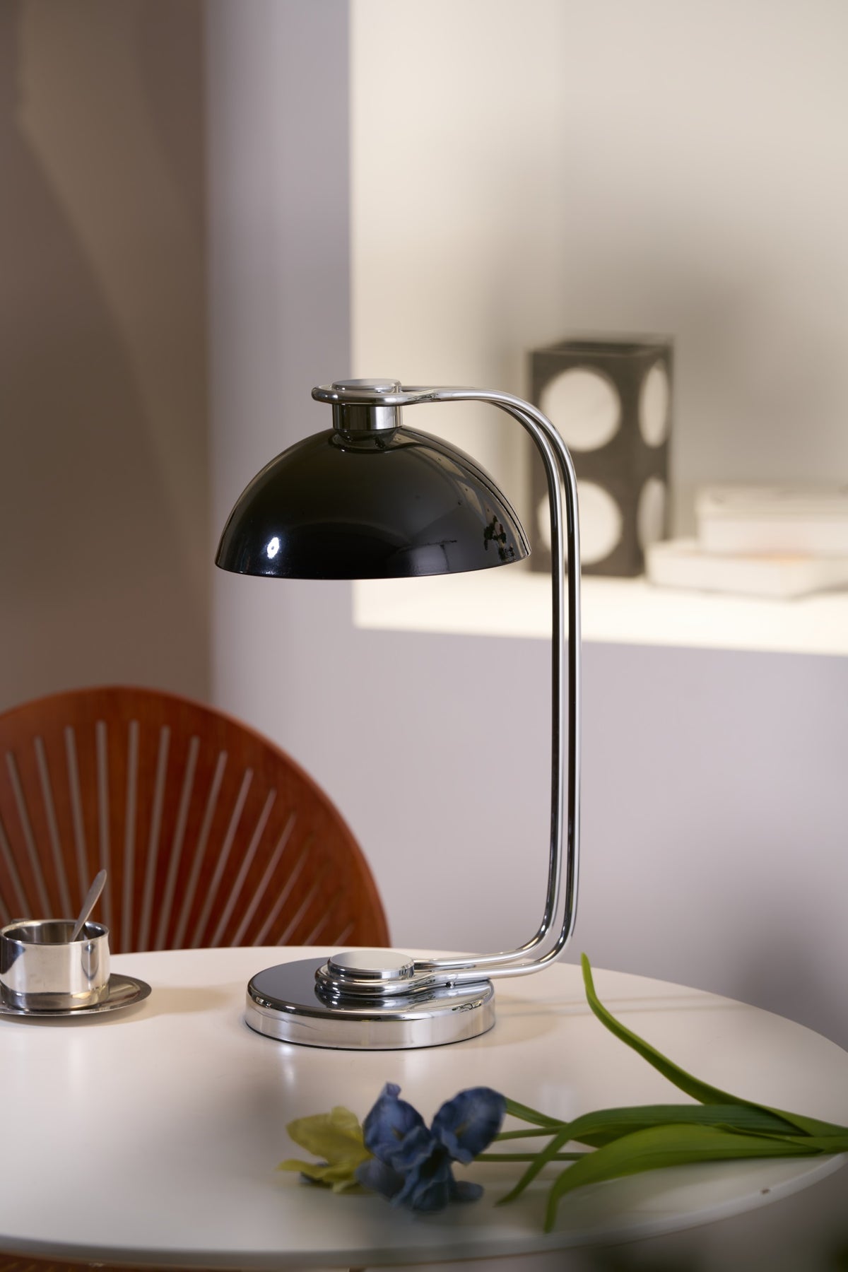 The Domex Desk Lamp offers a sleek fusion of retro charm and modern polish. Featuring a high-gloss black dome shade and a chrome-plated curved arm and base, this lamp brings a bold, streamlined presence to any workspace or reading nook. Its compact design and focused downward light make it perfect for task lighting, while the minimalist silhouette adds a touch of vintage-inspired sophistication to your desk or nightstand.
