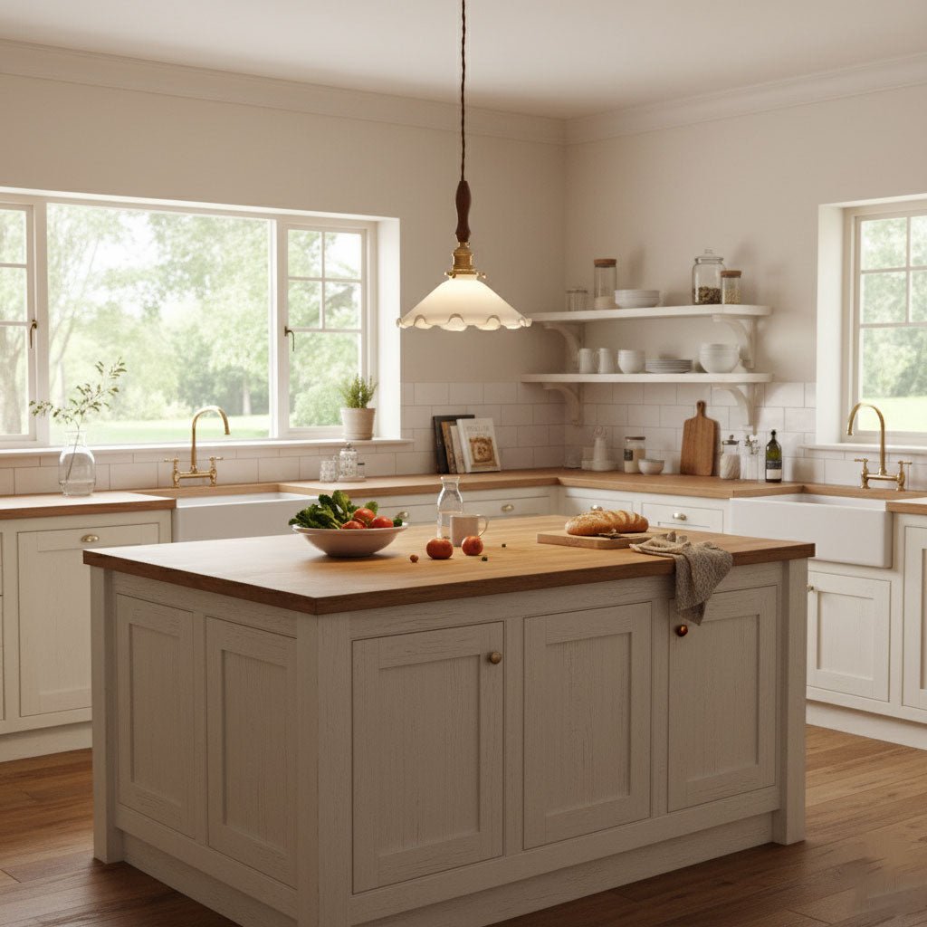 Pendants Over Island: These provide crucial task lighting for food prep and should hang 32-36 inches above the surface. Make sure that each pendant is about 1/4 the length of the island to provide sufficient coverage without overwhelming the space.