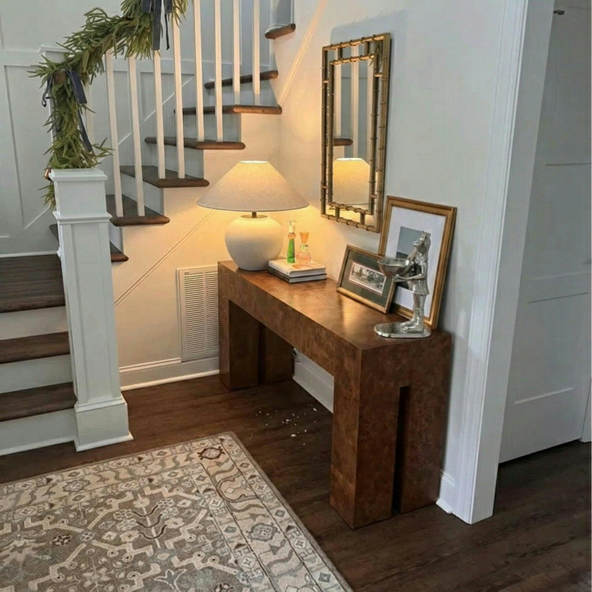 Chandeliers: The entryway is the perfect spot for a statement chandelier. Use the length + width formula to determine the diameter, and ensure the fixture hangs at least 7 feet from the floor to allow clearance.