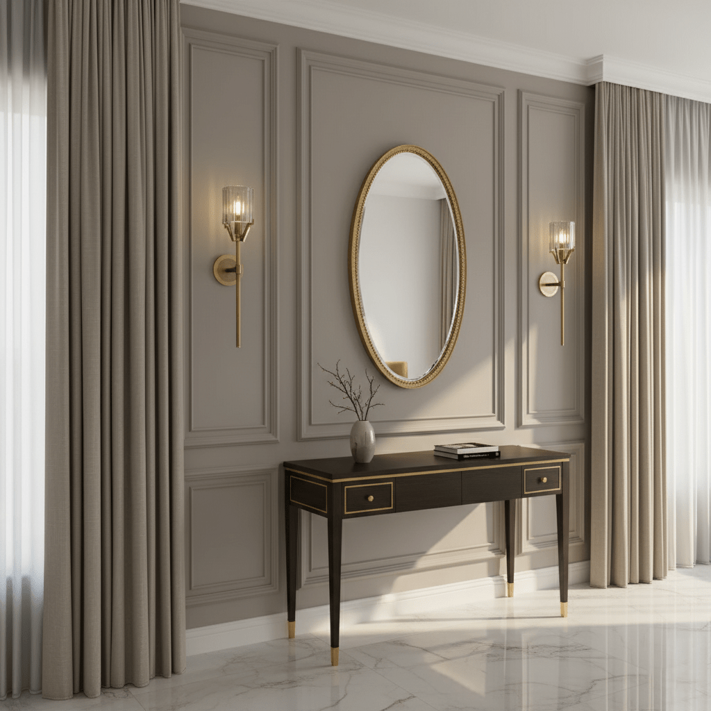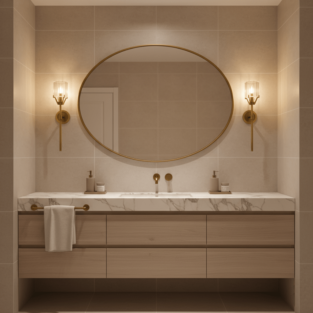 Vanity Lighting: For task lighting, place sconces on either side of the vanity mirror to minimize shadows. These should be mounted 65-70 inches from the floor, and spaced appropriately for even lighting.
