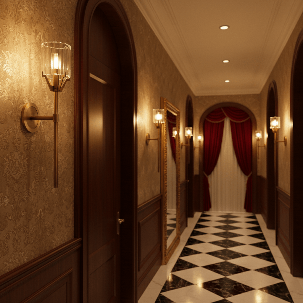 Hallway Lighting: Recessed or flush mount lights spaced evenly (every 8-10 feet) create a well-lit and inviting space.