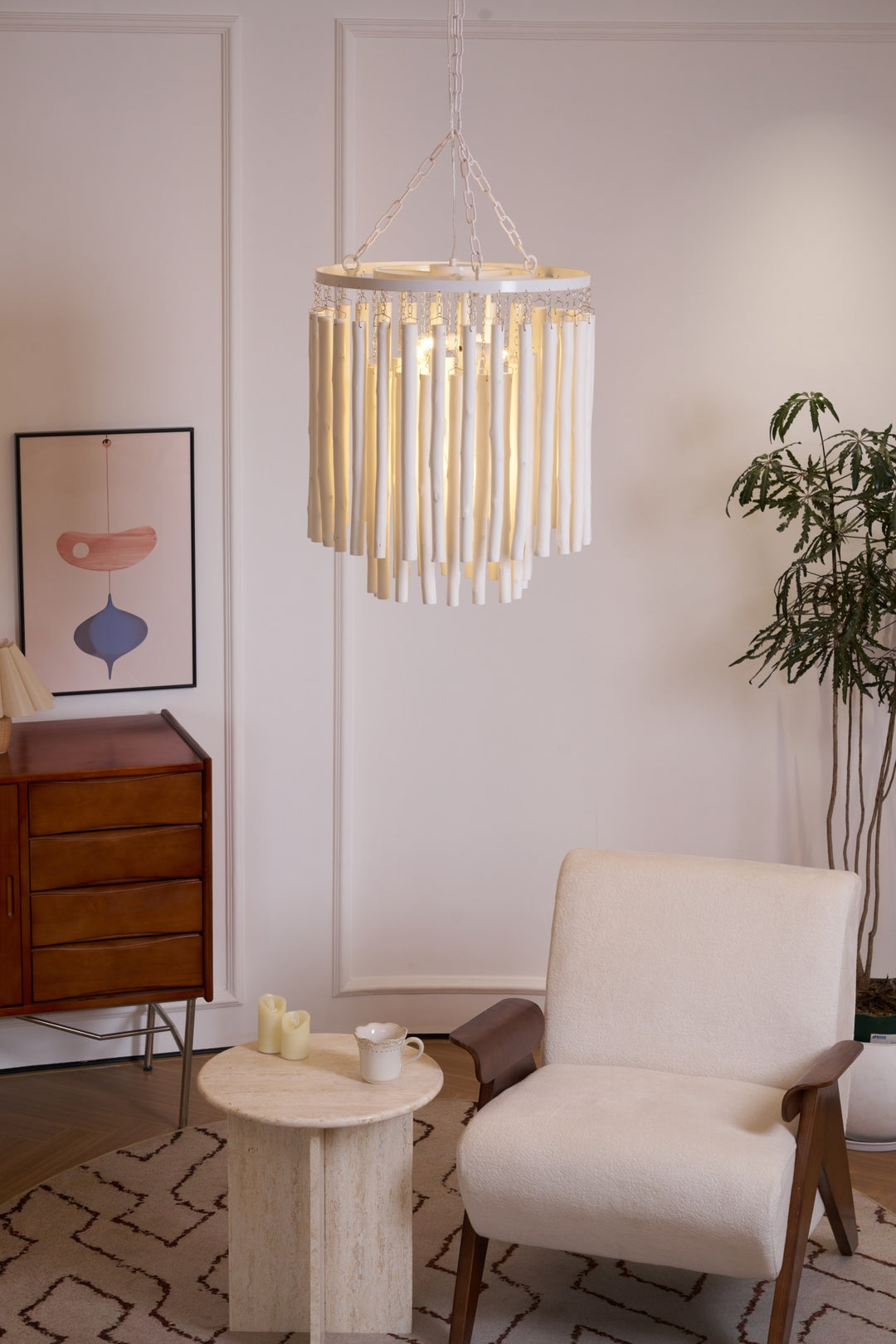 Chandeliers and Pendants: These are the focal points of the living room, especially in rooms with higher ceilings. To size appropriately, use the room dimension formula and ensure the fixture is in scale with the room’s layout. A general rule is to ensure there is at least 7 feet of clearance between the fixture and the floor.