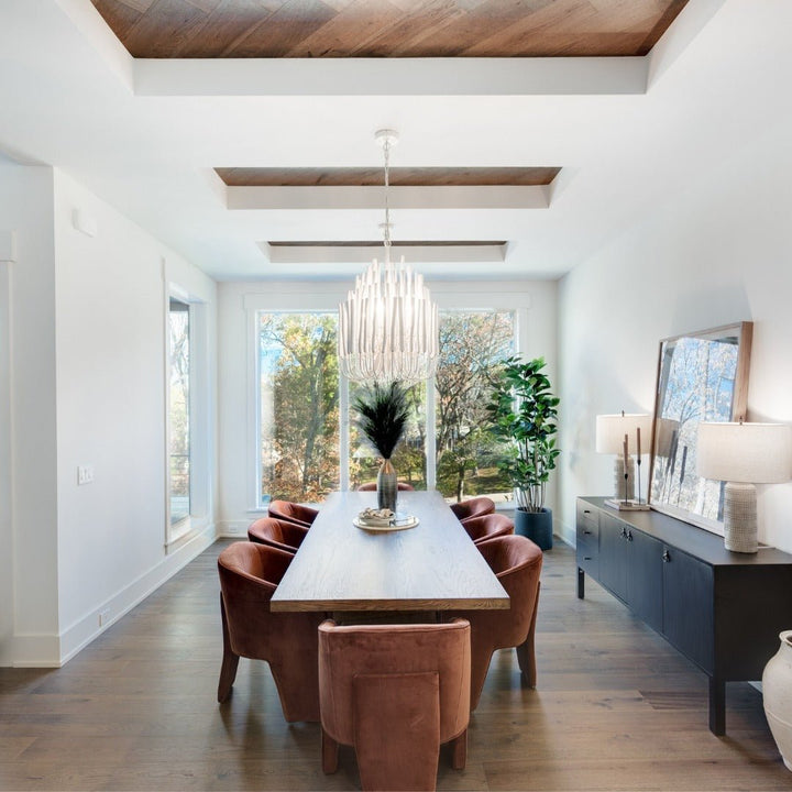 Standard Ceilings (9-10 feet): Chandeliers and pendant lights are ideal for rooms with standard ceiling heights, especially in dining rooms and entryways. Ensure the bottom of the fixture hangs at least 7 feet from the floor.