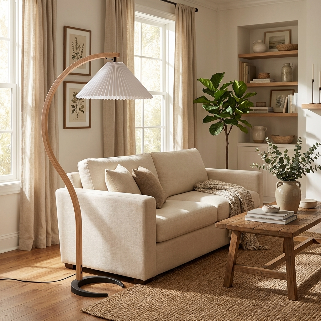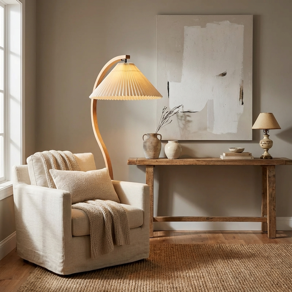 • 作業用照明: テーブルランプやフロアランプは、読書や部屋の特定の場所を照らすのに最適な、光の層を作り出します。フロアランプは、一緒に置く家具のサイズに合ったものを選びましょう。