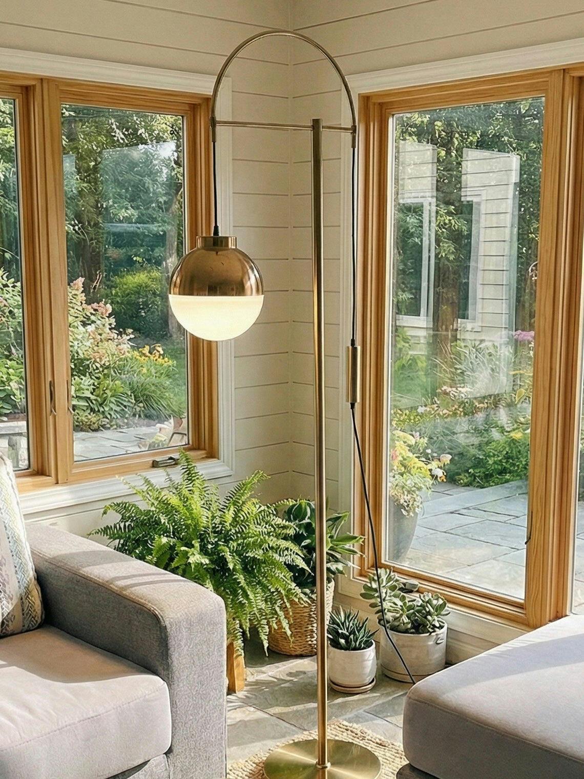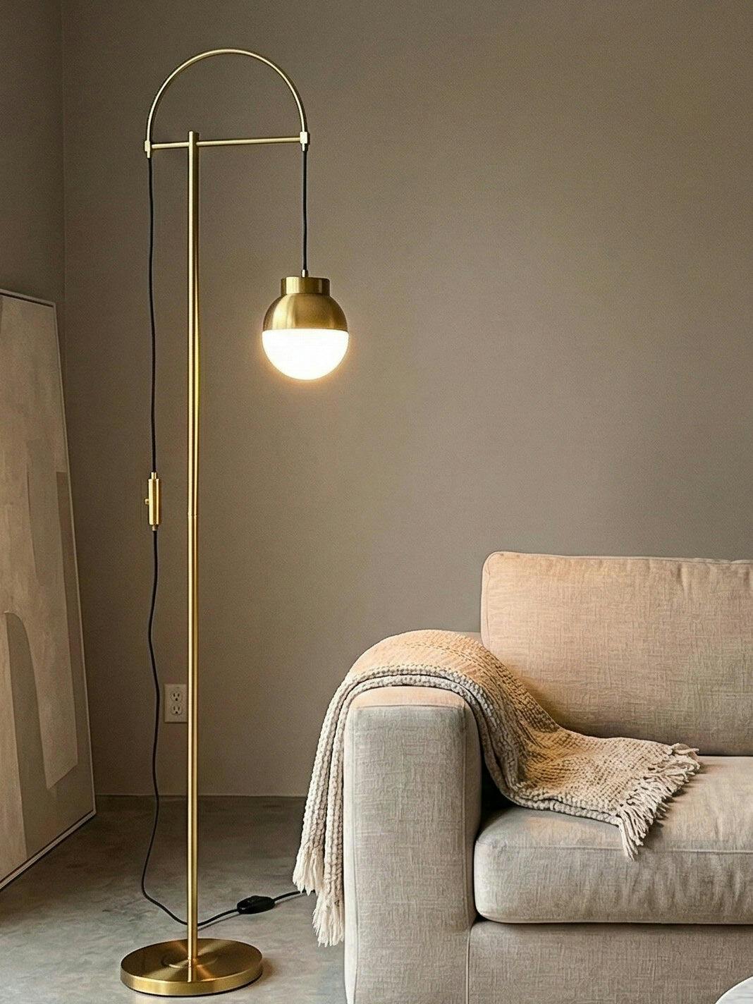 Deze chique boogvloerlamp met zijn iconische midden van de eeuw gevoeligheid zal een moderne sfeer creëren, waar je hem ook plaatst. De matglazen bol wordt gecombineerd met zacht, geborsteld messing om het eigentijdse design te verdubbelen.