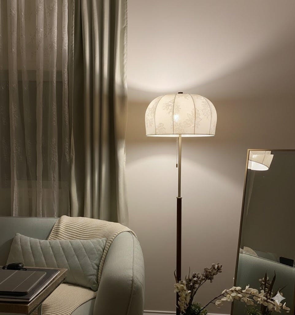 Voeg een vleugje vintage elegantie toe aan uw ruimte met de Scandicci vloerlamp. Dit prachtige exemplaar heeft een unieke stoffen kap in de vorm van een hoed, die elke kamer een vleugje verfijning geeft. Met zijn houten voet straalt deze lamp een klassieke maar toch moderne charme uit. Verrijk uw interieur en creëer een warme en uitnodigende sfeer met de Scandicci vloerlamp.