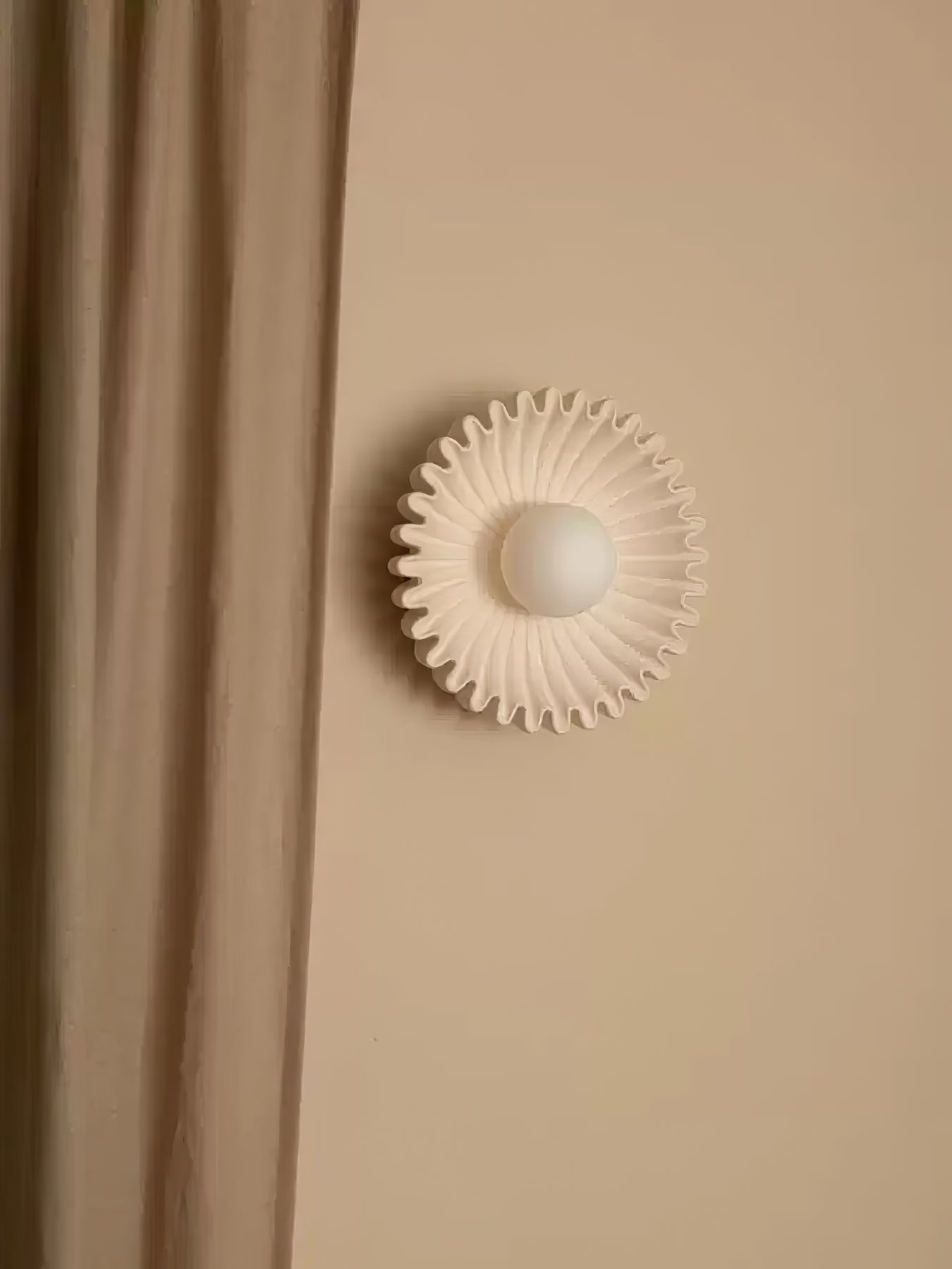Verlicht je ruimte met de stralende charme van de Solora Flora wandlamp. Geïnspireerd door de warmte van de zon en de delicate schoonheid van bloeiende bloemblaadjes, transformeert dit kunstwerk elke muur in een statement van elegantie en natuurlijke gratie. Handgemaakt van prachtig marmer, vertelt elke ronding en nerf een uniek verhaal van tijdloze verfijning.