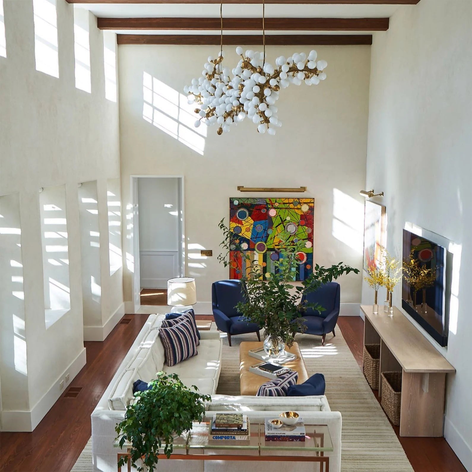 • Kroonluchters : De hal is de perfecte plek voor een opvallende kroonluchter. Gebruik de formule voor lengte en breedte om de diameter te bepalen en zorg ervoor dat het armatuur minstens 2,1 meter boven de vloer hangt om ruimte te creëren.