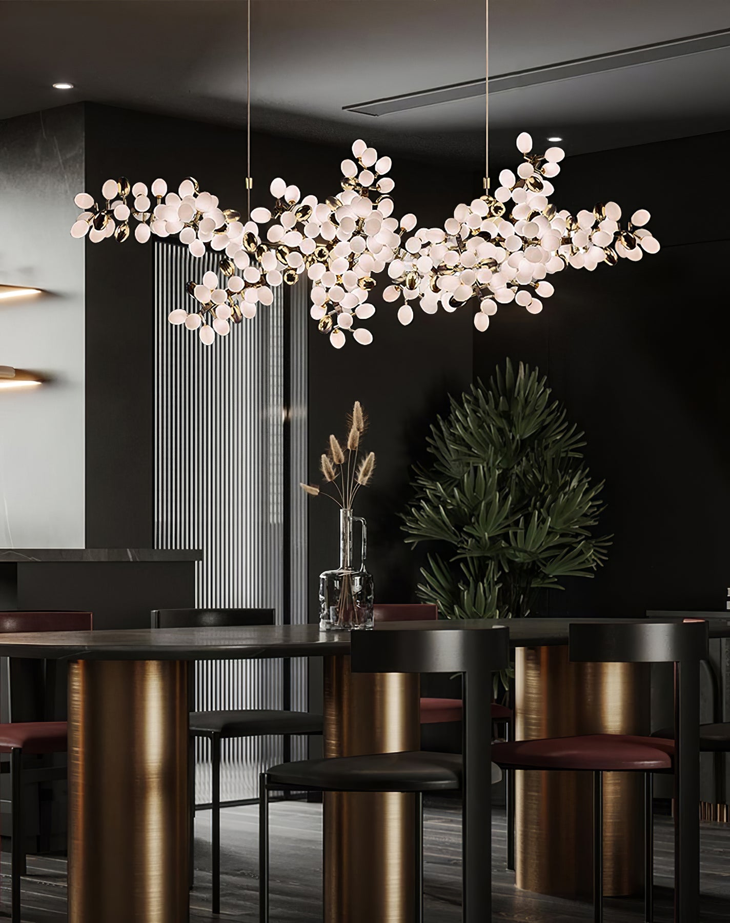 • Meerdere hanglampen : Voor lange rechthoekige tafels creëert u een evenwichtige uitstraling door twee of drie kleinere hanglampen gelijkmatig boven de tafel te plaatsen.