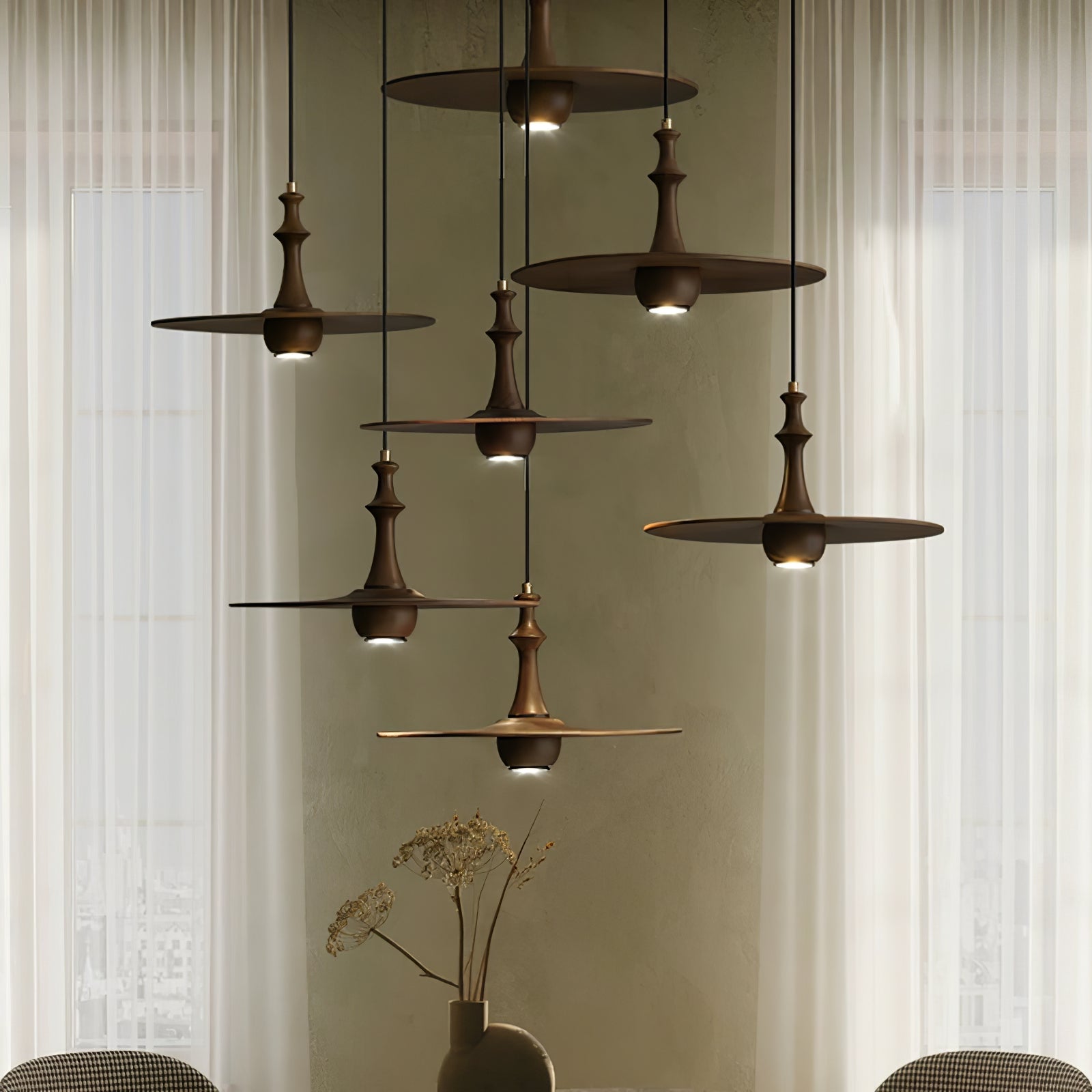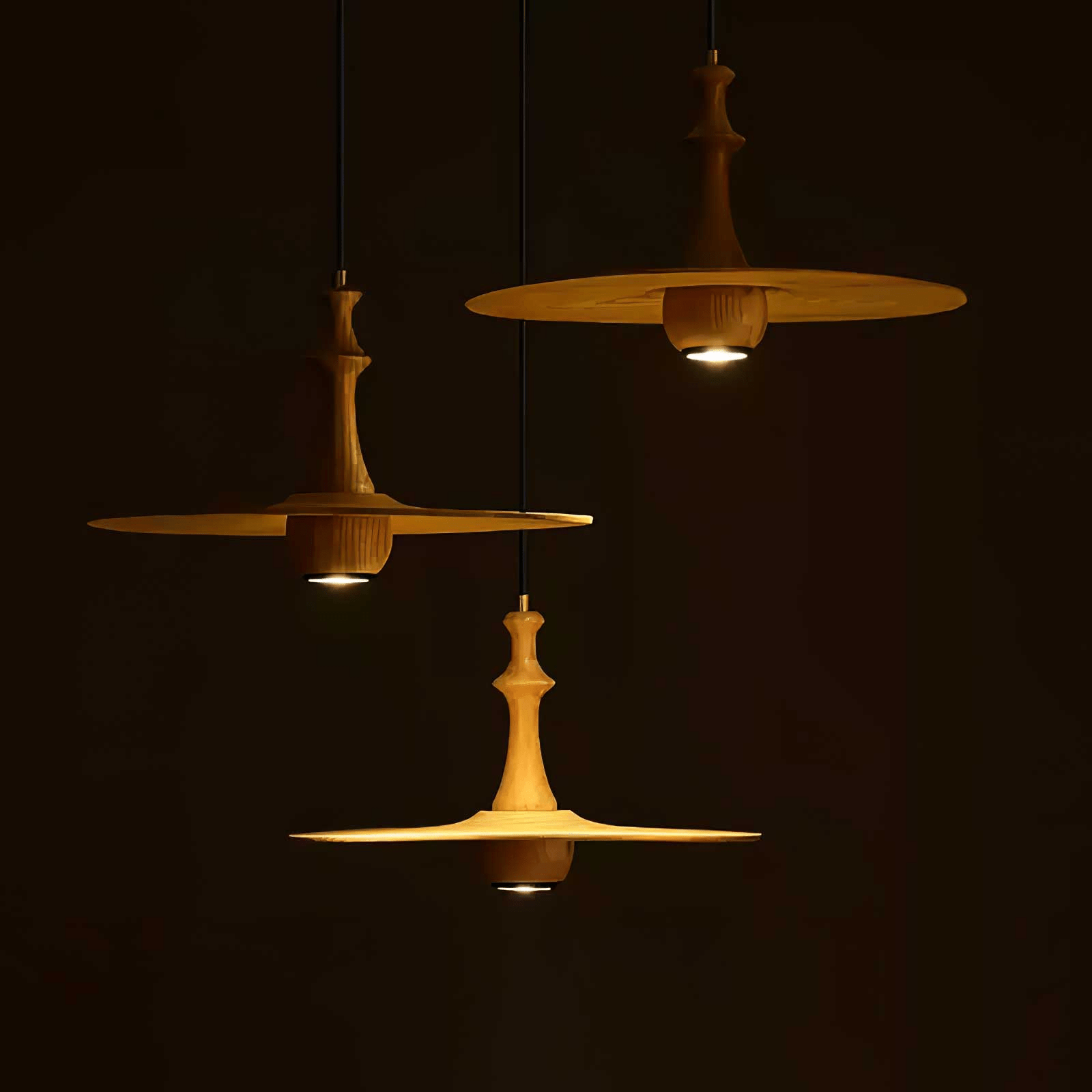 Waar vakmanschap en creativiteit samenkomen - de Wooden Spin hanglamp is geïnspireerd op tollen en vintage houtdraaikunst. Gemaakt van natuurlijk hout, bieden het elegante silhouet en de brede ronde kap een zacht, neerwaarts schijnend licht, perfect voor eetkamers, lounges of cafés met een verfijnde rustieke of Japandi-stijl.