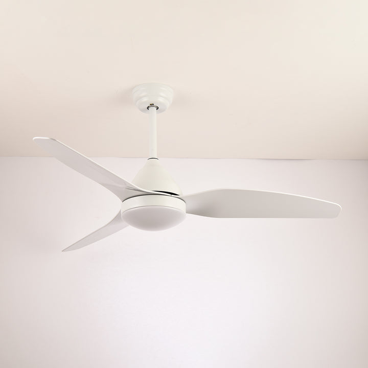 De Aeris Whisper plafondventilator heeft gladde, lichthouten bladen in combinatie met een strak witte motorbehuizing, wat lichtheid en sereniteit uitstraalt. Met zijn zachte, geïntegreerde licht en minimalistische vorm is hij de perfecte statement voor Scandinavische interieurs, kustretraites of luchtige moderne huizen.