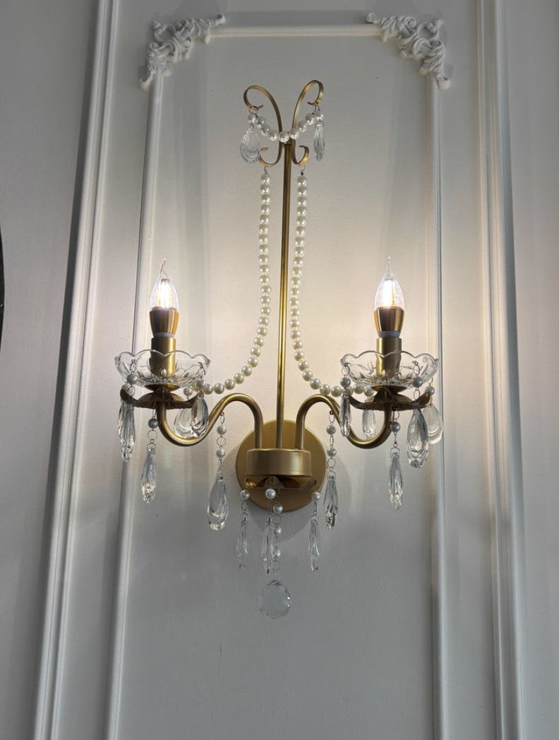 This Crystal Pearl Chain Wall Lamp exudes a classic French vibe with its refined details. Featuring a luxurious crystal material, it's perfect for accentuating a hallway, bedroom, living room, or staircase.