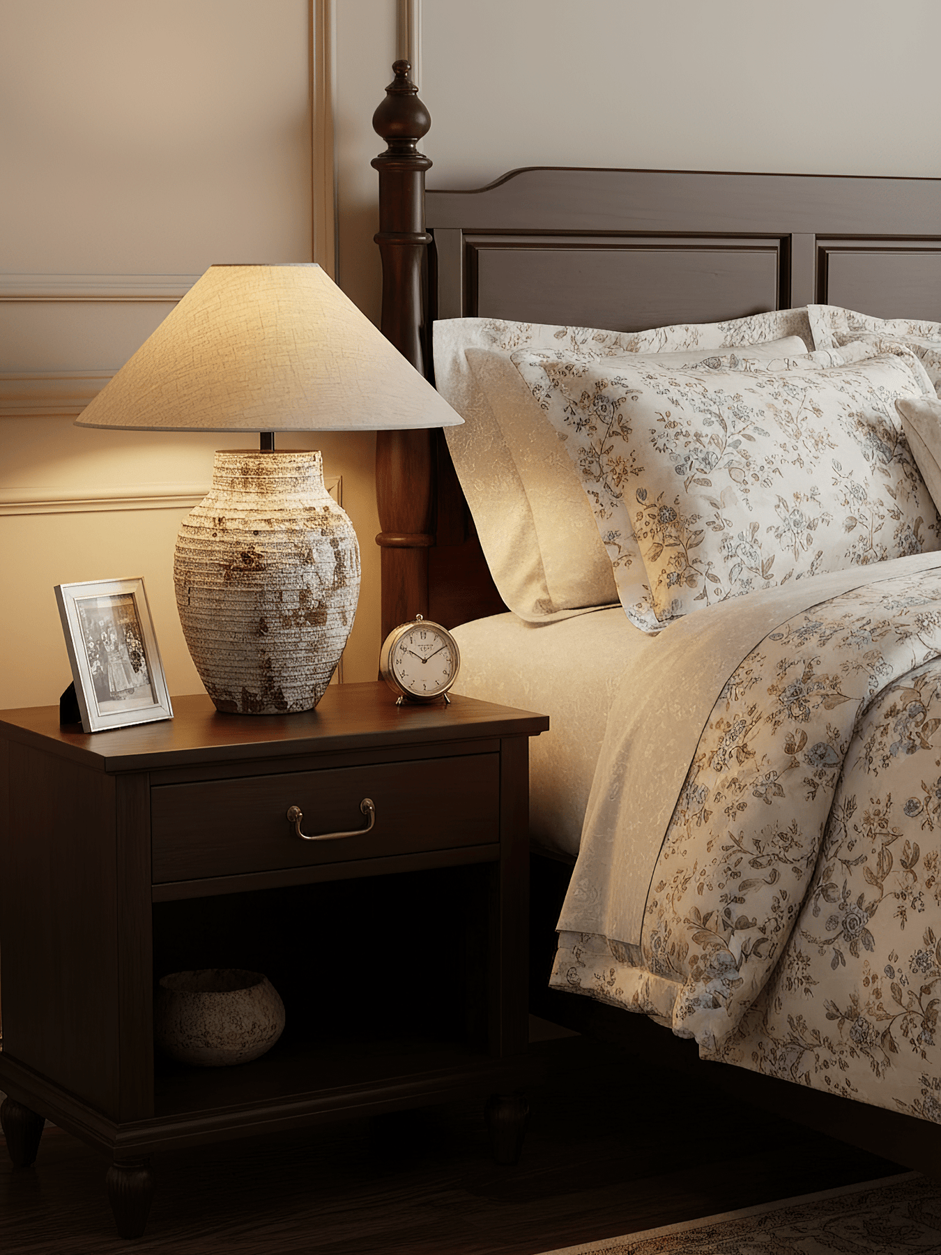 Ceiling Fixtures: Bedrooms benefit from soft, ambient lighting. Use the room dimension formula to ensure the ceiling fixture is properly scaled. Semi-flush or flush mounts work well for general lighting, while sconces or bedside lamps provide focused task lighting.