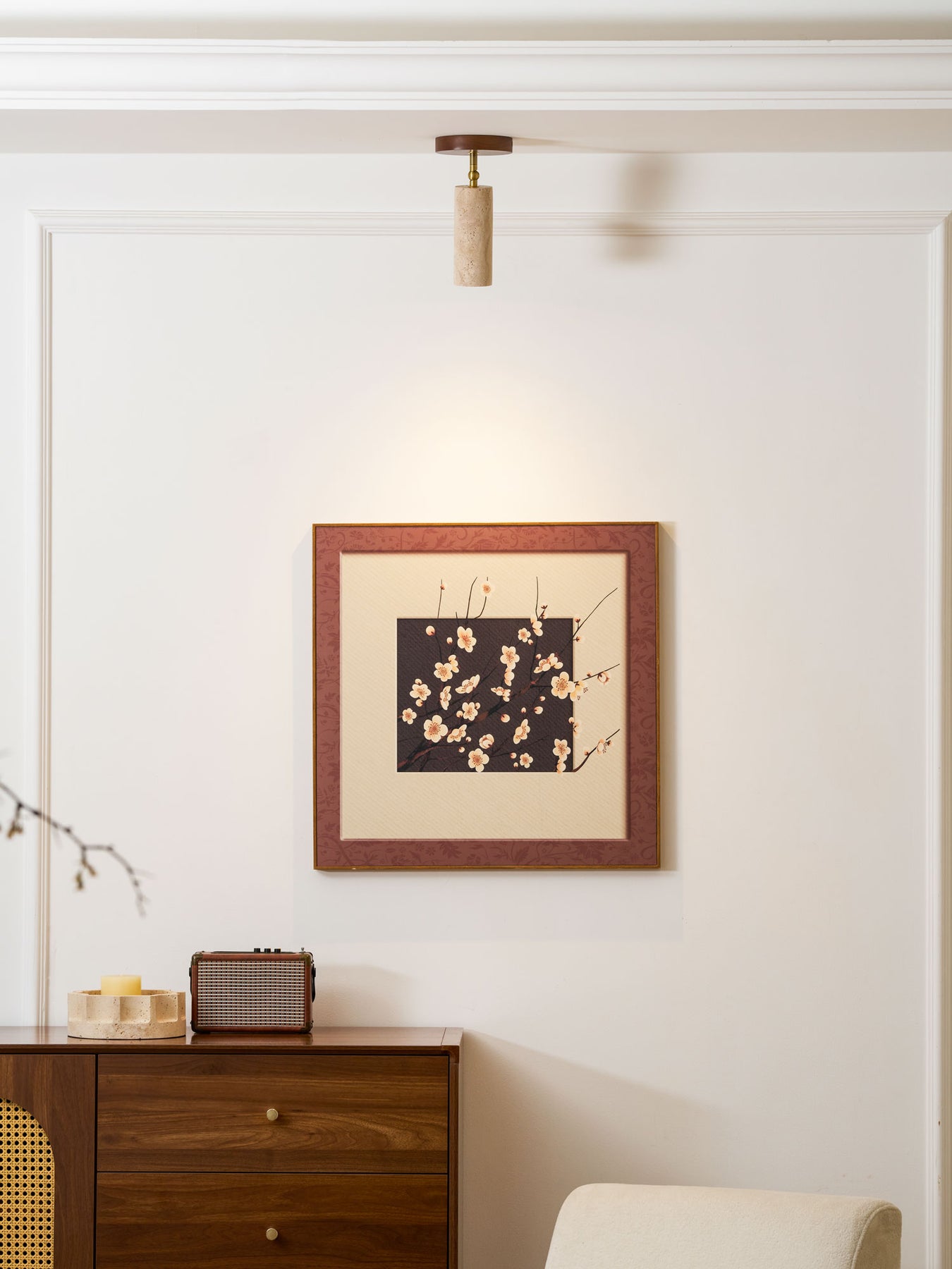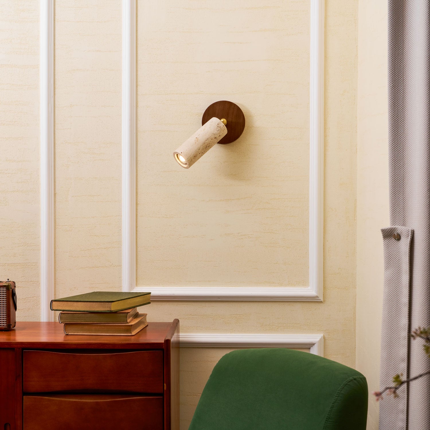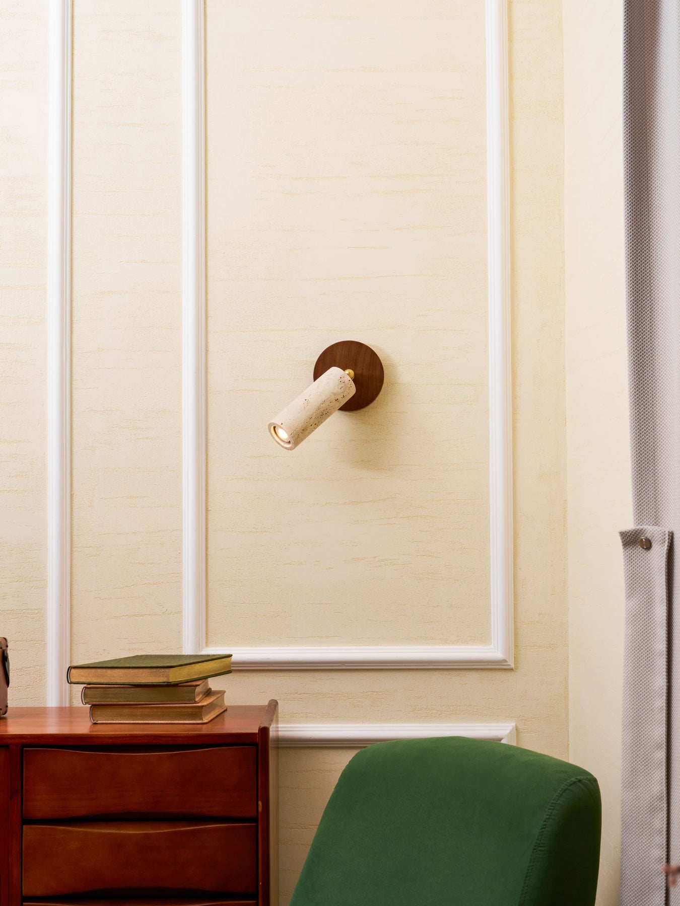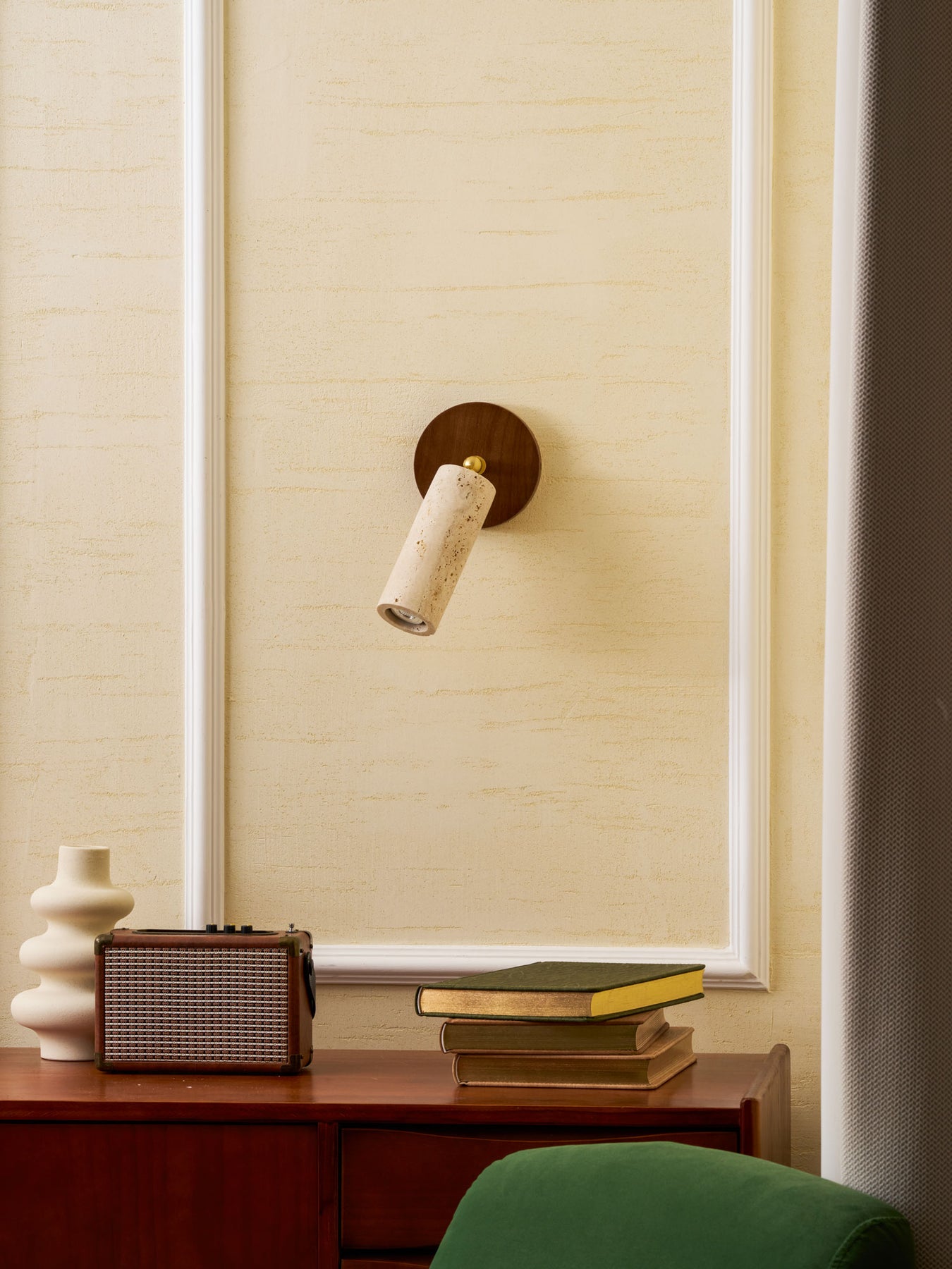 The Vakkerlight Solis Stone Spotlight is a fusion of raw nature and refined craftsmanship. Featuring a meticulously sculpted travertine stone cylinder, complemented by a warm walnut wood ceiling mount and brass pivot, this spotlight exudes a timeless elegance. Its adjustable design allows for precise lighting, making it a versatile addition to contemporary interiors—perfect for accentuating artwork, creating ambient mood lighting, or adding a sophisticated touch to hallways and living spaces.
