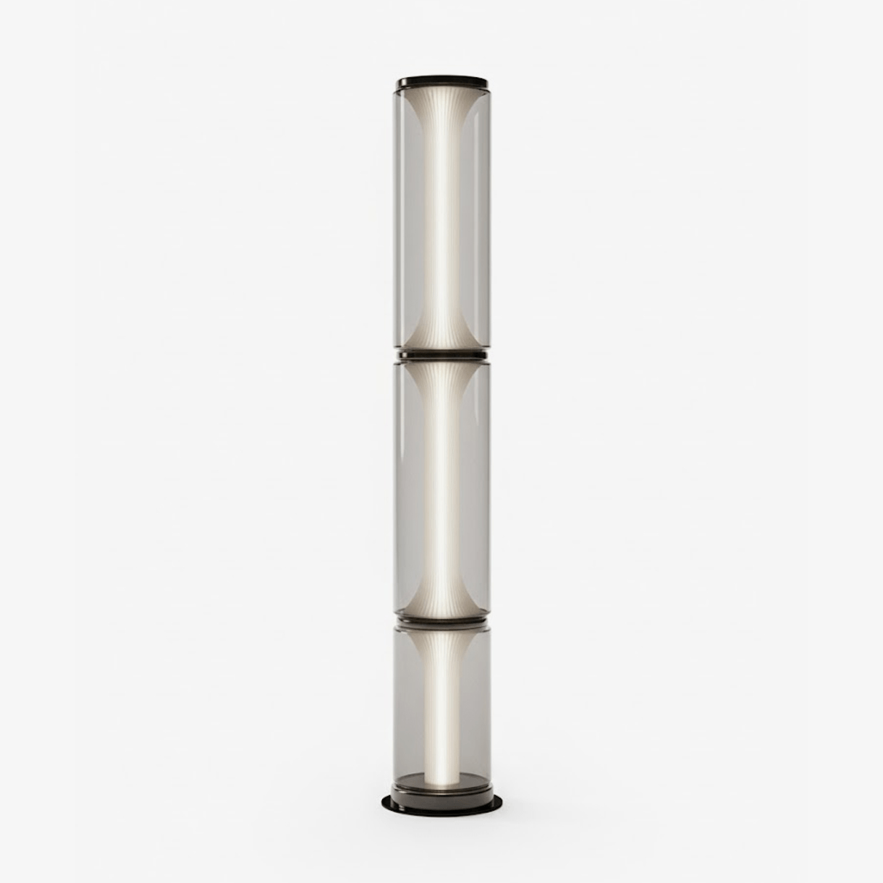 The Miles Floor Light showcases a sophisticated arrangement of fluted, horn-like forms encased in clear glass. Each hand-blown piece stacks to create a refined column that emits a warm, inviting glow. This expertly crafted lamp combines artisanal glassmaking with contemporary design, making it an elegant focal point for modern living spaces.