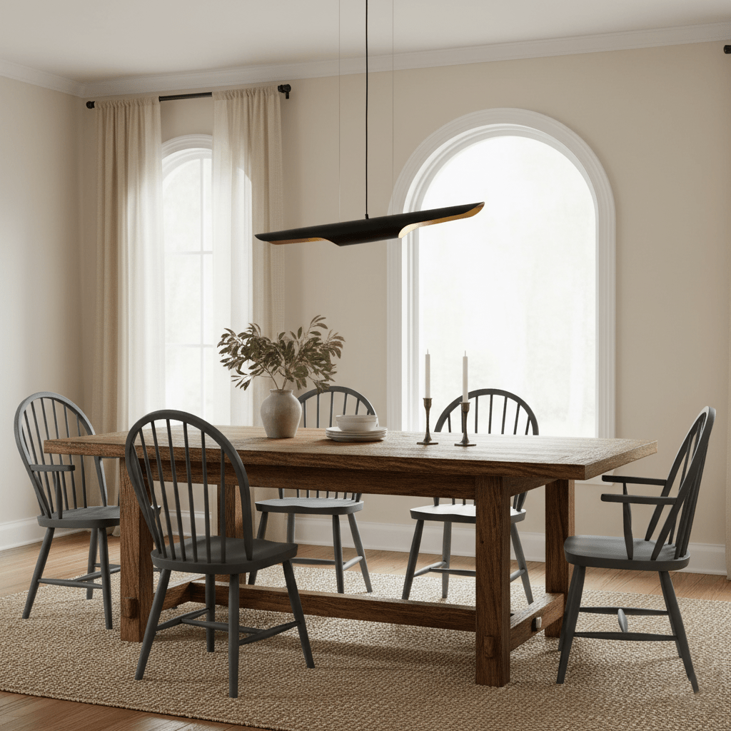 - Multiple Pendants: For long rectangular tables, two or three smaller pendants spaced evenly above the table create a balanced look.