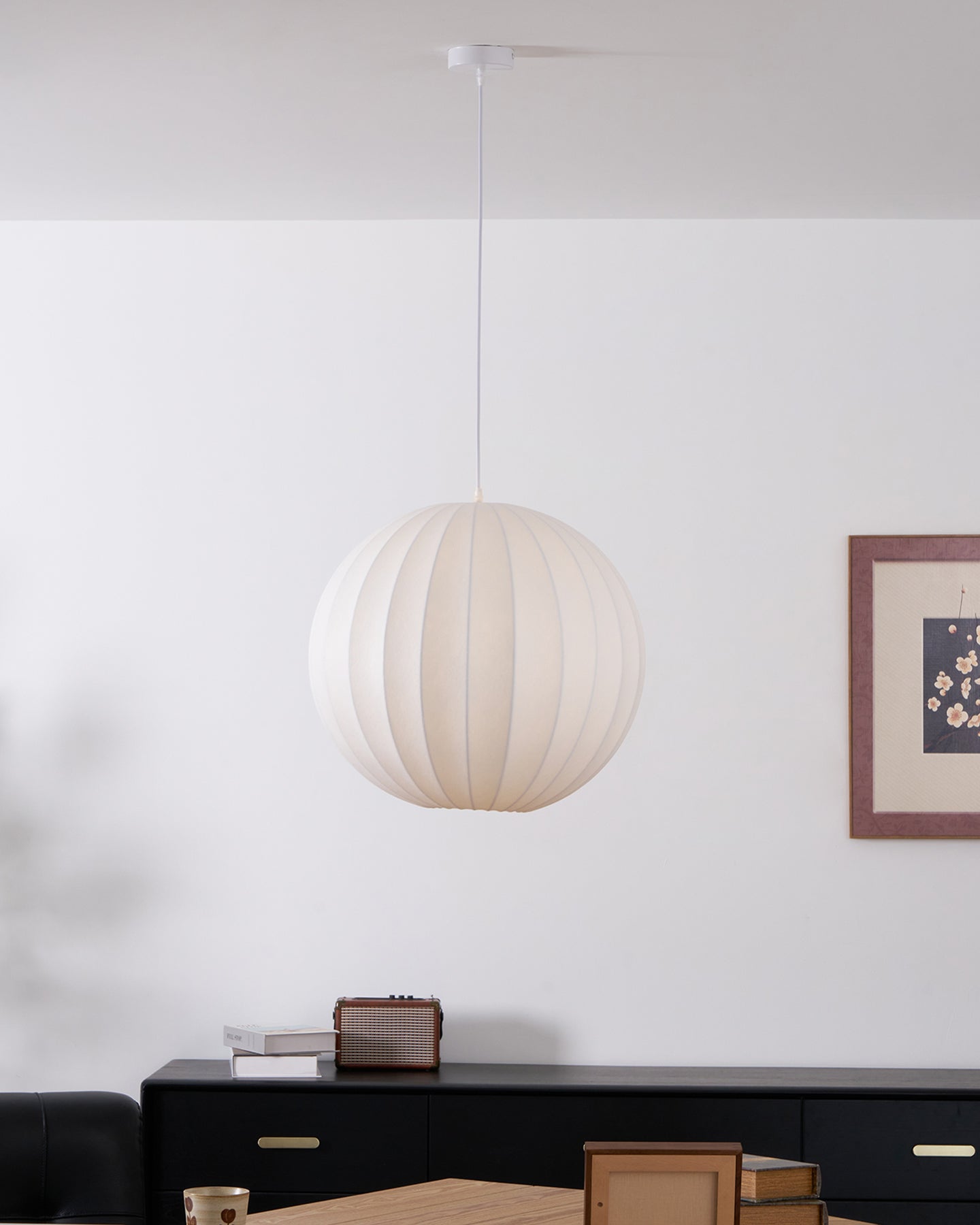 Brighten up any room with the Kenroy Pendant Lamp. Handcrafted from high-quality silk, this is a statement piece that adds warmth and sophistication to any décor. With its ideal diameter and the option to cluster a series of lamps, this luxurious lighting is perfect for any space. Enhance your home with the welcoming glow of the Kenroy Silk Pendant Lamp.