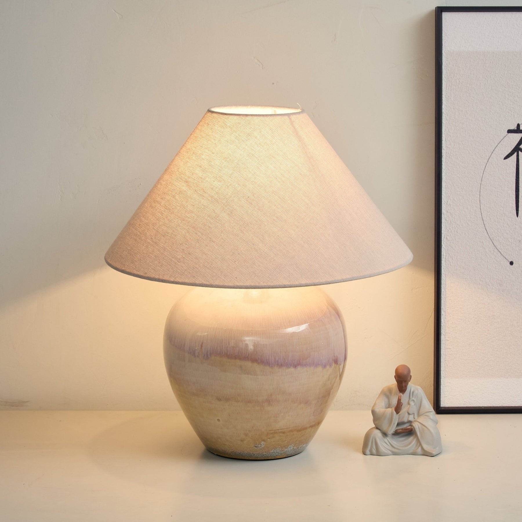 This table lamp features a ceramic base with a beautiful gradient color effect, giving it an artistic and distinctive presence. During the high-temperature firing process, the ceramic surface develops its own natural texture and pattern — meaning each lamp is truly one-of-a-kind. No two pieces will ever be exactly the same, making every lamp a unique work of art.
