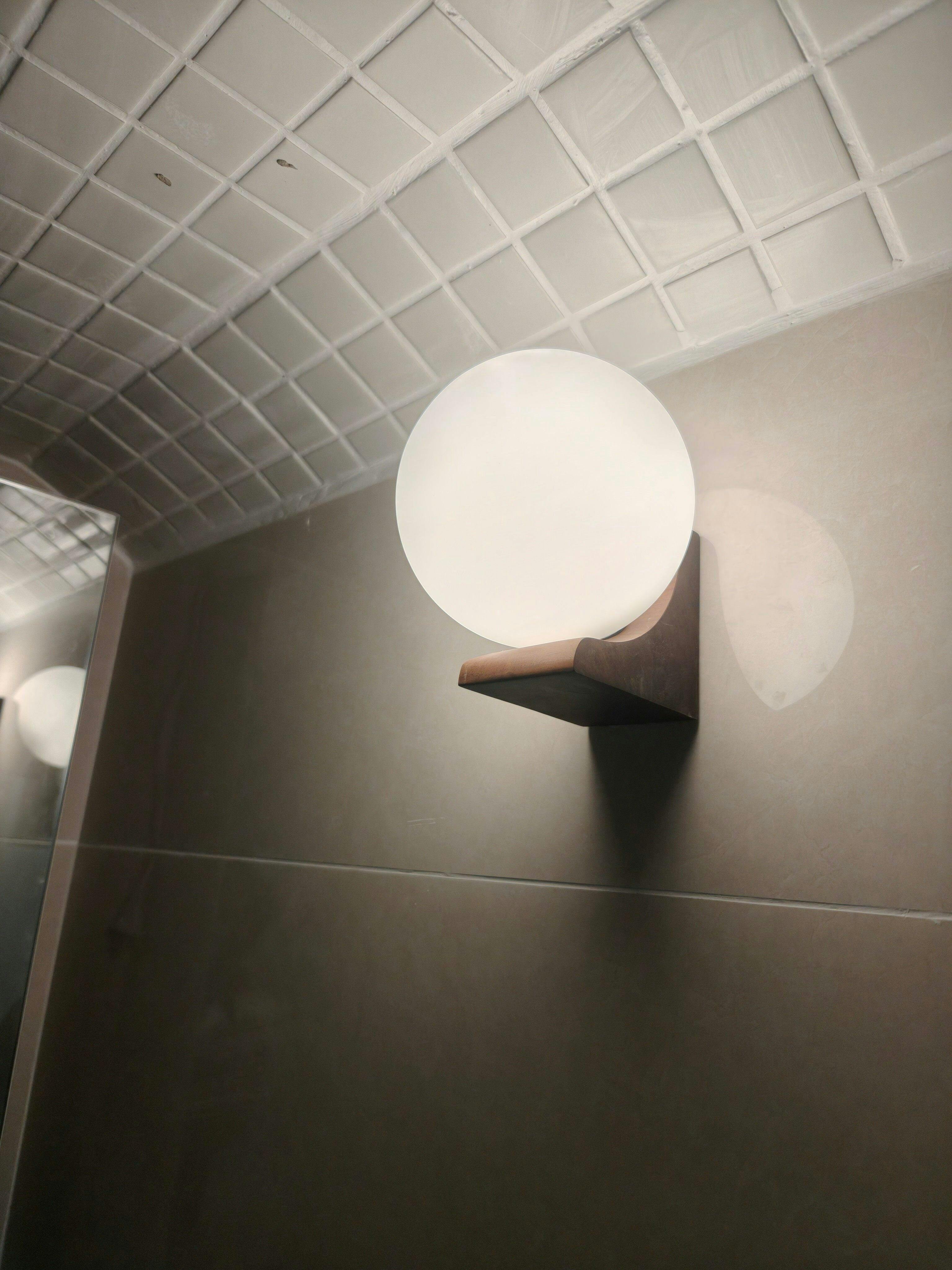 Illuminate any corner of your space with the elegant and peaceful Evelyn Orb Wall Lamp. The sturdy walnut base provides stability while the glass sphere diffuses light into a soft and alluring glow. With its graceful curves and understated design, this lamp serves as both a functional and stylish addition to your home.