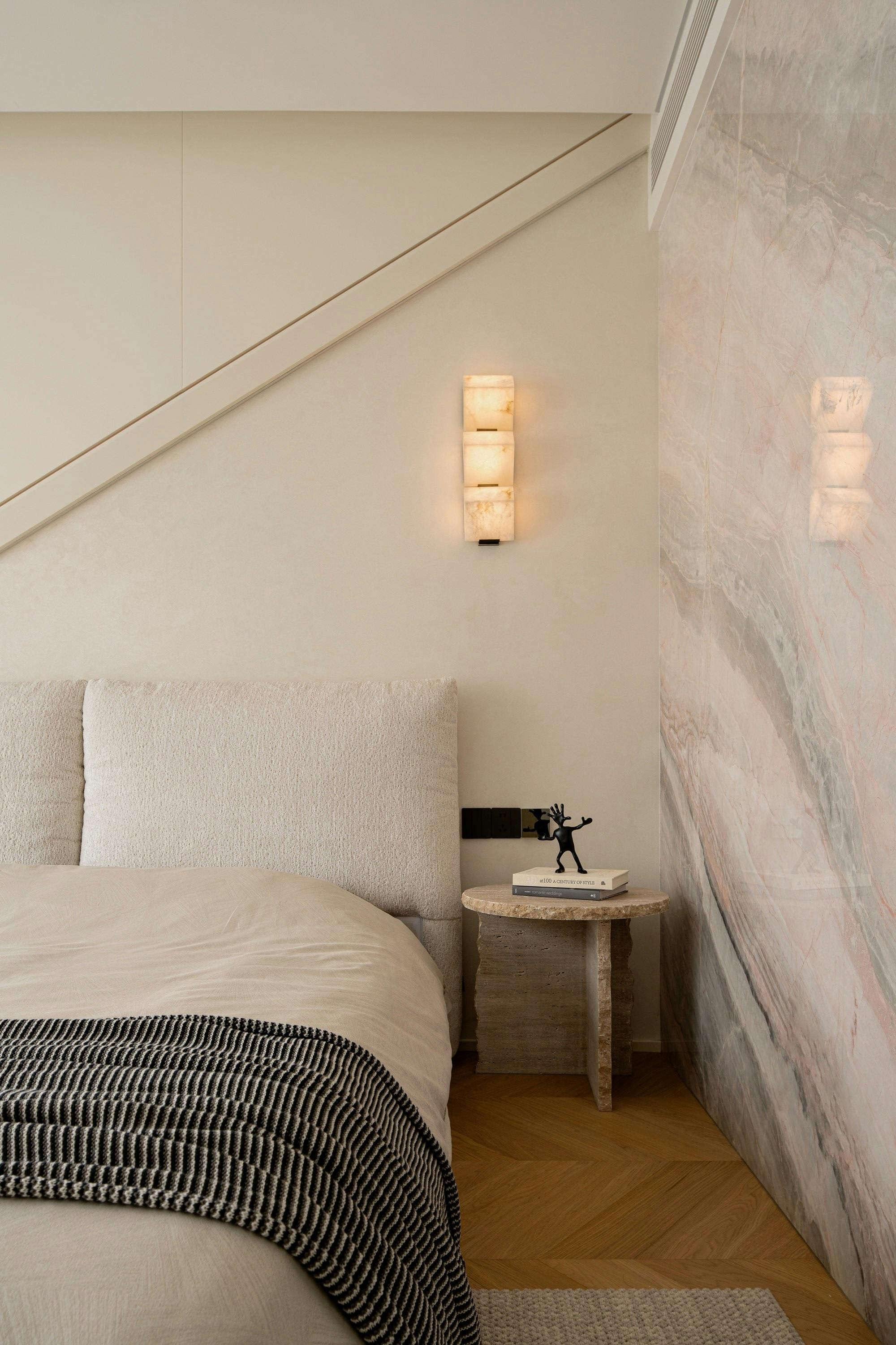 Experience elegance and sophistication with the Alabaster Staircase Wall Lamp. The Alabaster Staircase Wall Lamp is designed with elegance and sophistication. It is crafted with a luxurious white alabaster panel, allowing natural light to fully diffuse, this minimalistic piece allows for natural light diffusion, bringing an air of sophistication to any interior design. With timeless design and minimalistic touches, this lamp is sure to elevate your space.