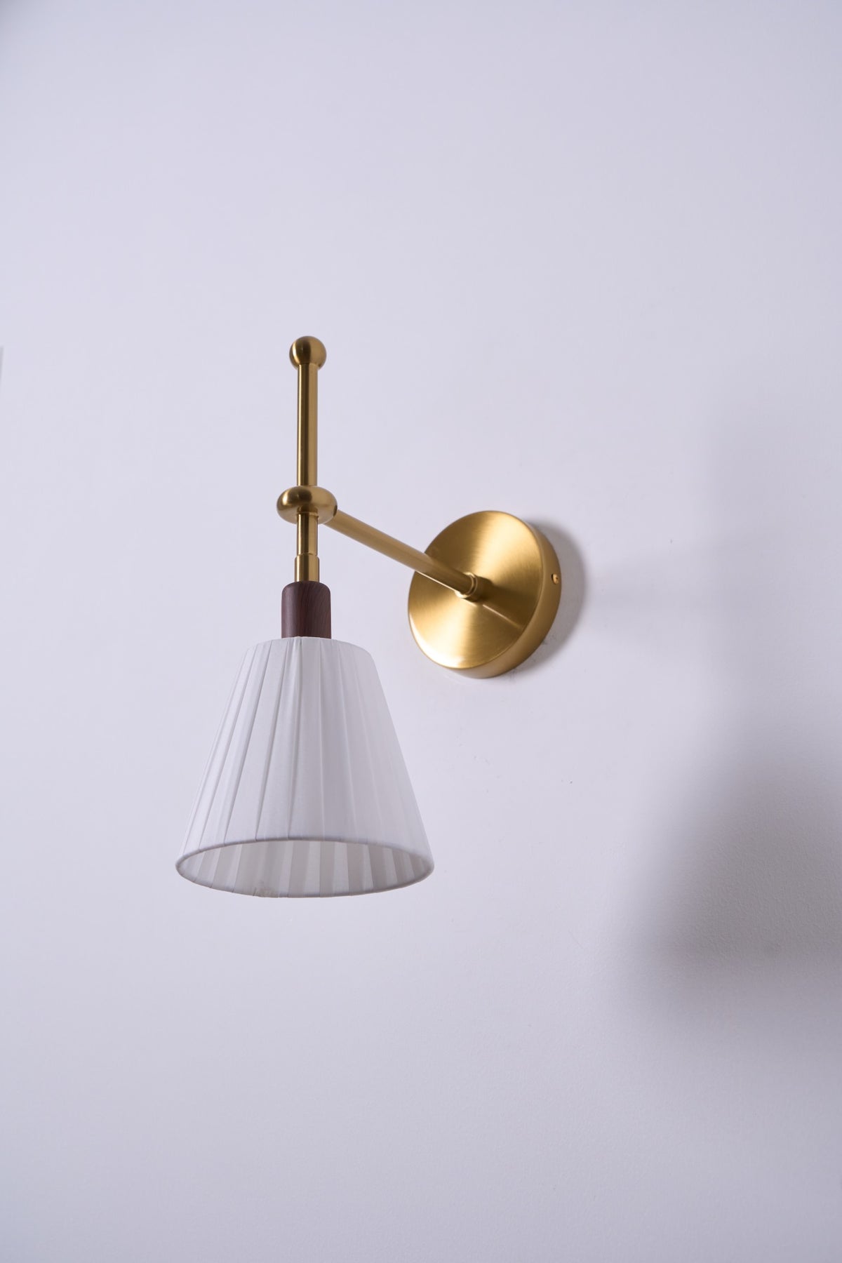 A harmonious blend of classic charm and modern elegance — the Pleated Fabric Wall Lamp with Brass Arm brings understated luxury to your interiors. Featuring a timeless pleated fabric shade in cream or white, this lamp diffuses a soft, ambient glow that instantly warms the room. The brushed brass arm adds a touch of refinement, while the wood-accented detail provides organic balance.