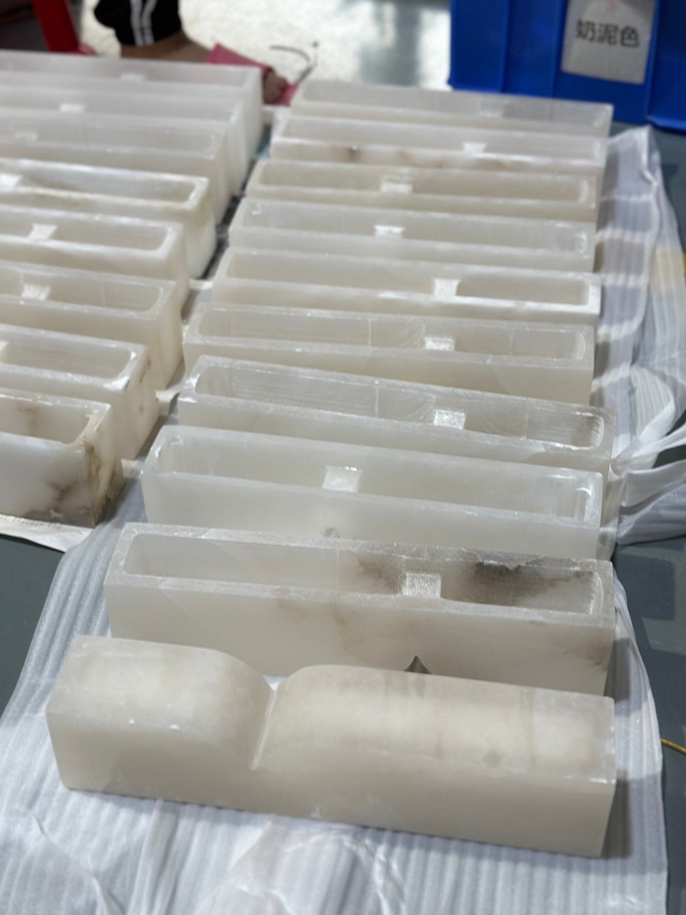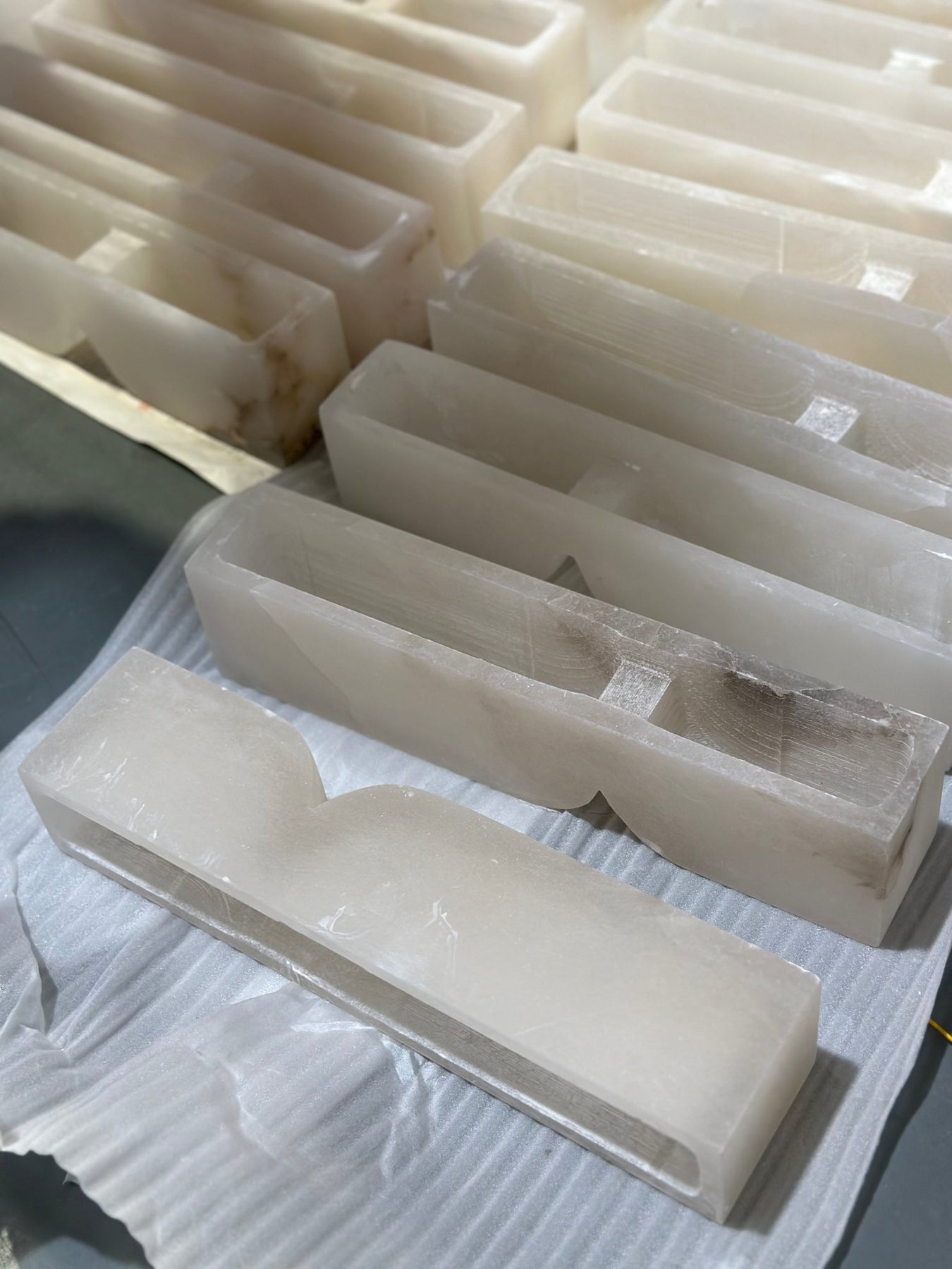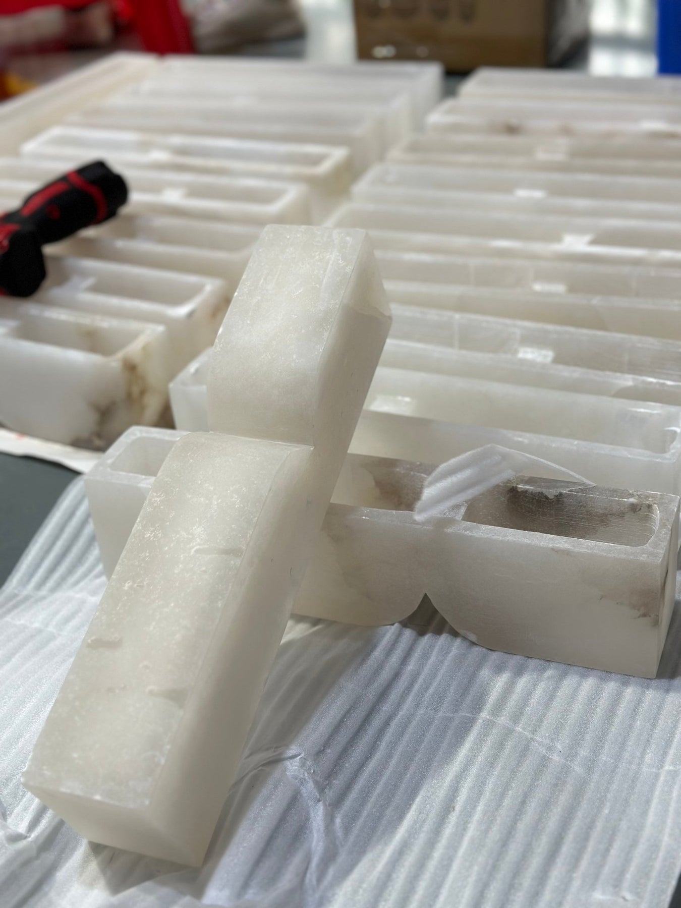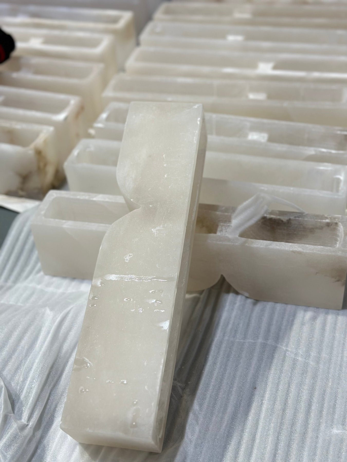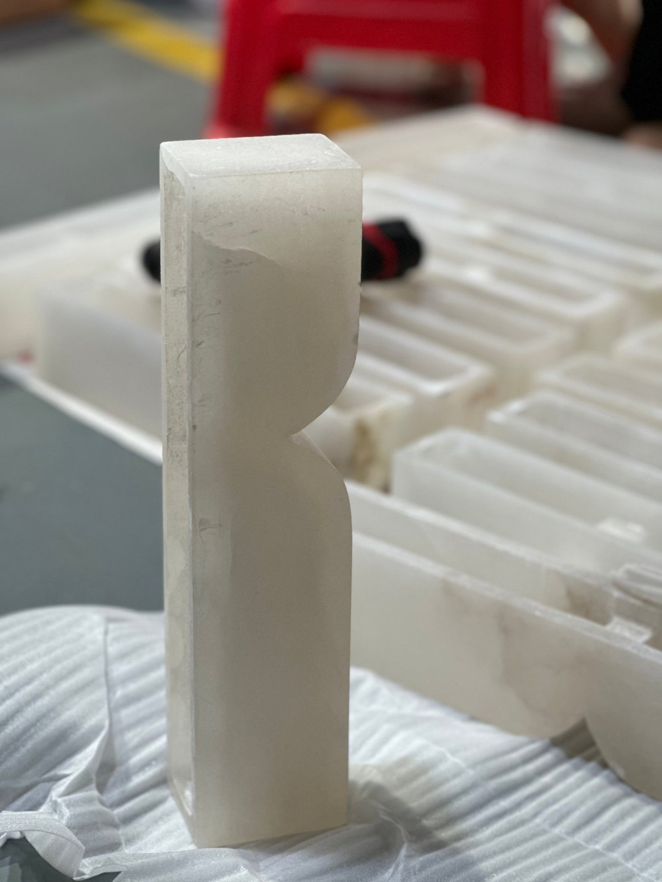 Every piece is meticulously shaped, showcasing the stone's naturalveins and translucence, adding sophistication to any room.