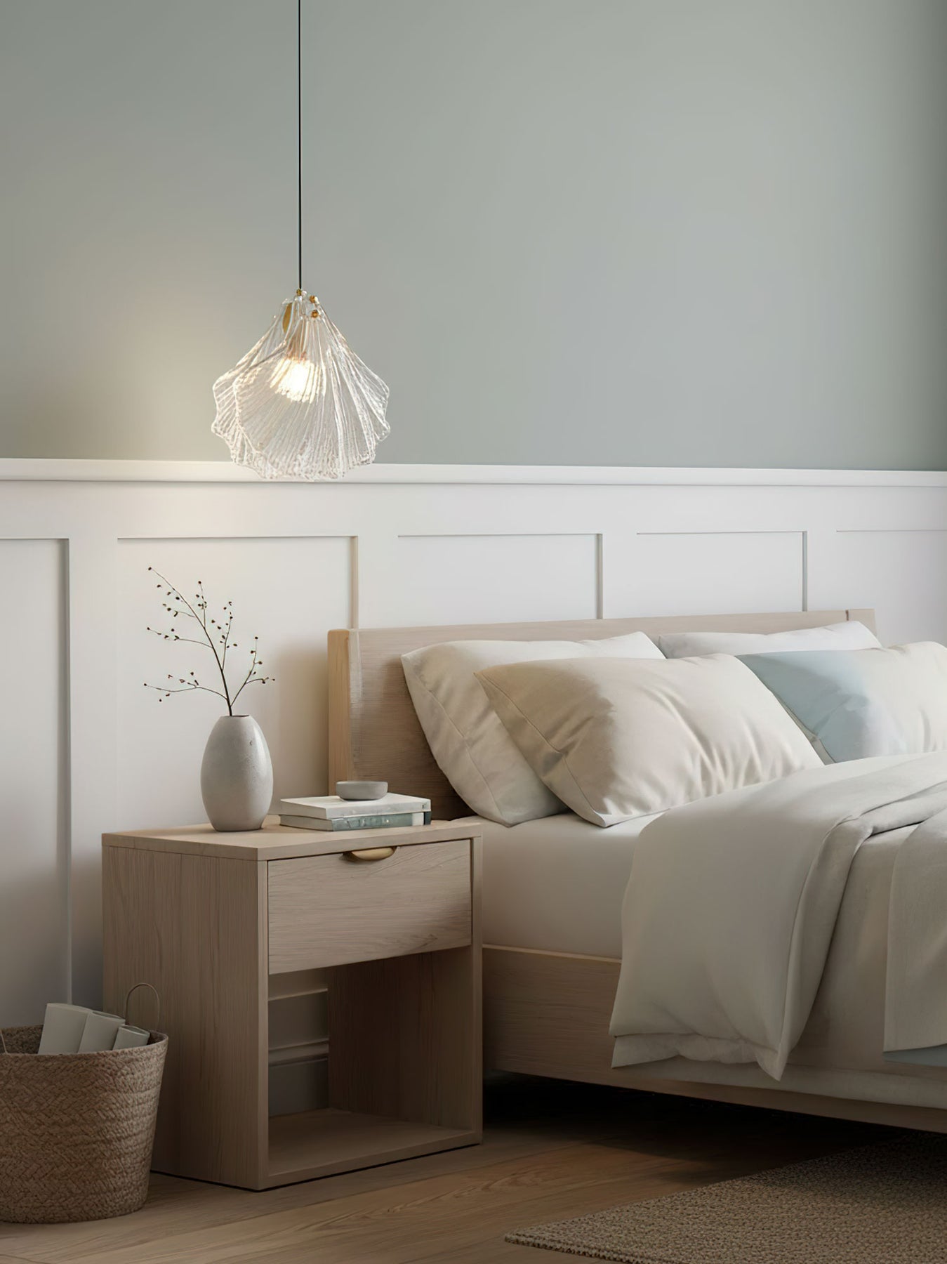 Ceiling Fixtures: Bedrooms benefit from soft, ambient lighting. Use the room dimension formula to ensure the ceiling fixture is properly scaled. Semi-flush or flush mounts work well for general lighting, while sconces or bedside lamps provide focused task lighting.