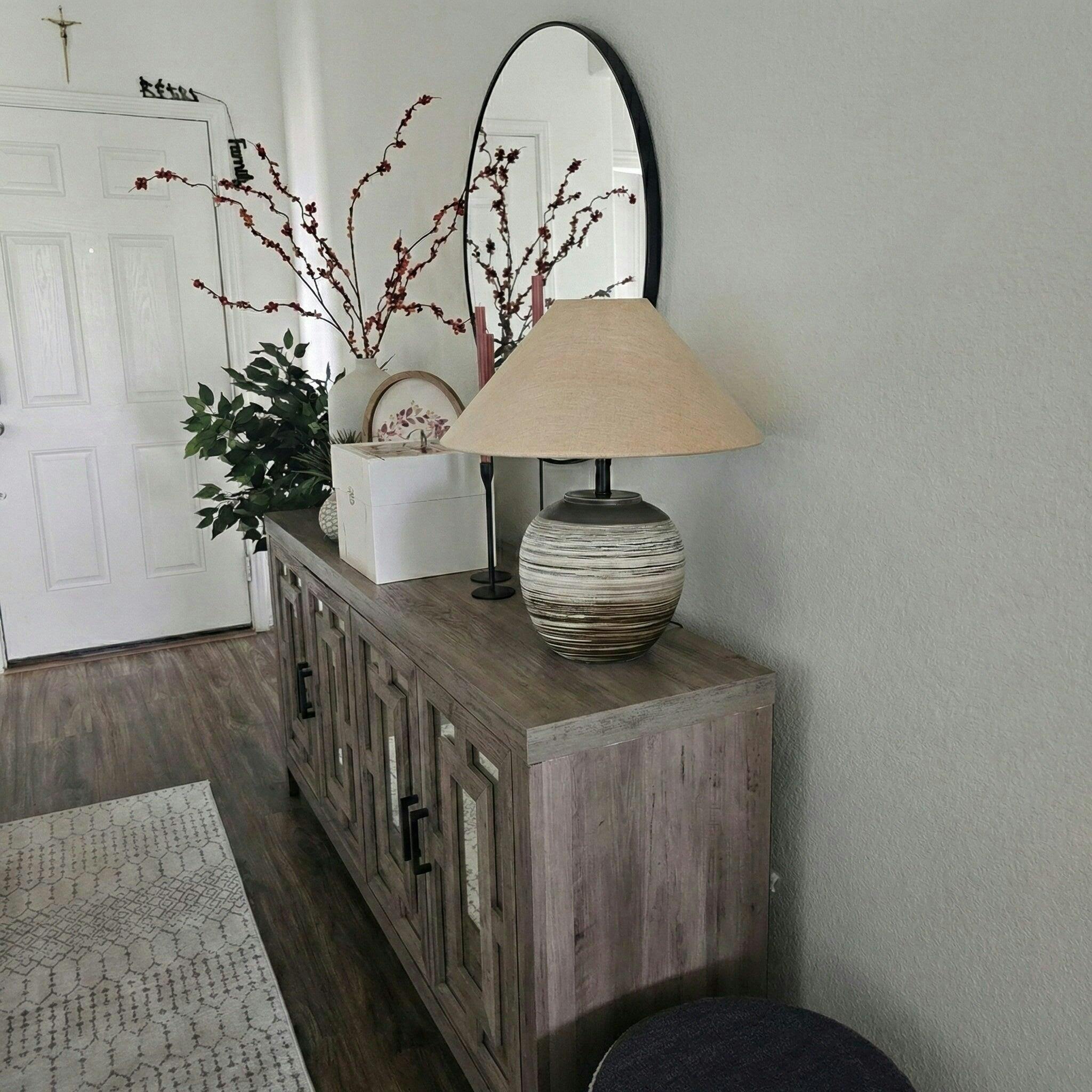 Chandeliers: The entryway is the perfect spot for a statement chandelier. Use the length + width formula to determine the diameter, and ensure the fixture hangs at least 7 feet from the floor to allow clearance.
