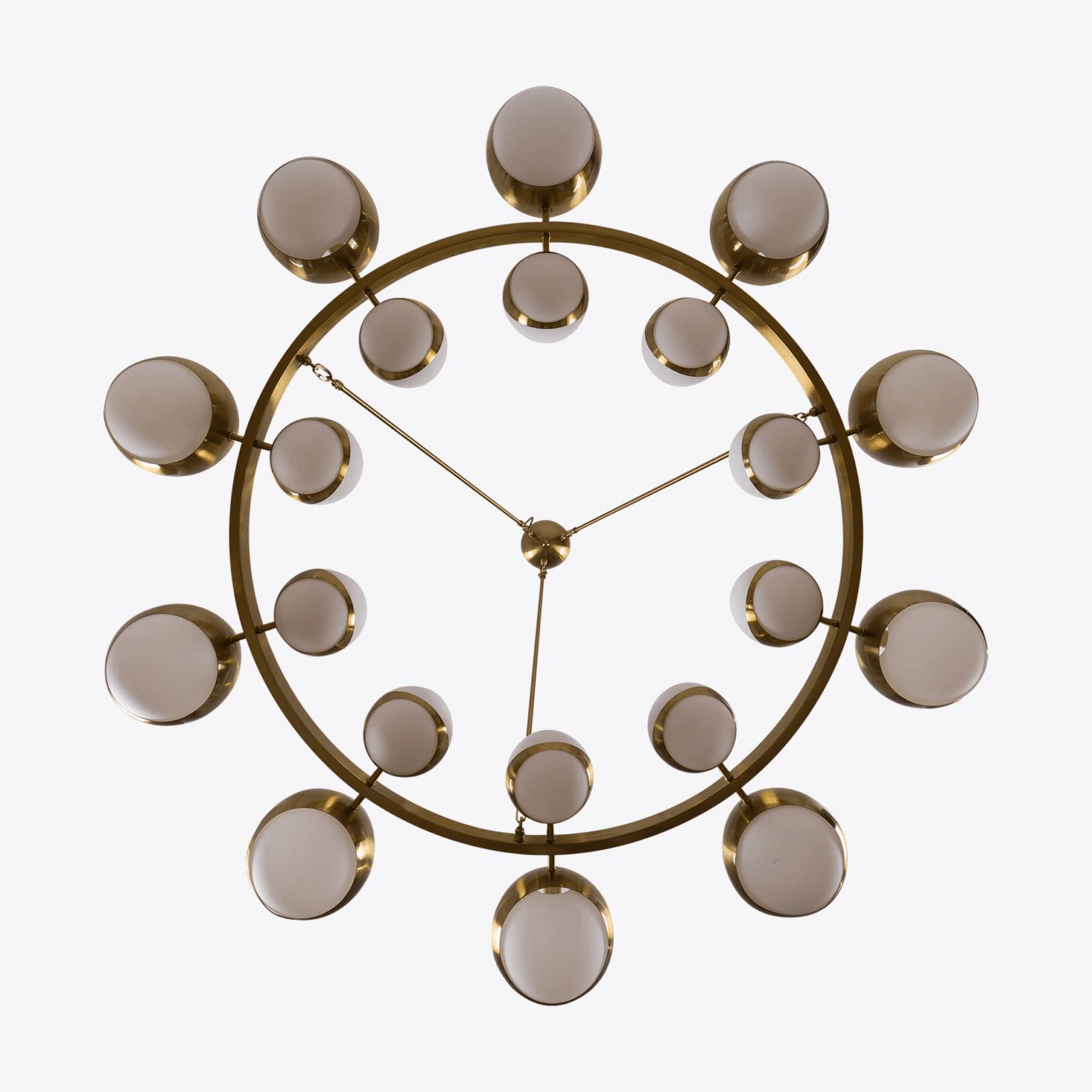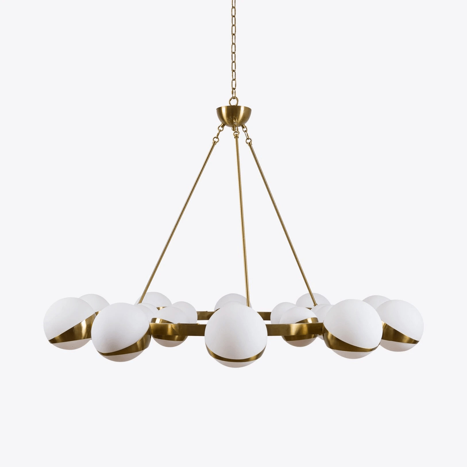 Inspired by a 1970s Murano design, the Lucca Sputnik chandelier combines vintage elegance with modern craftsmanship. Available in two sizes, it features opaline glass globes arranged on both the inner and outer rims of a brass-finished frame, creating a balanced and sophisticated lighting centerpiece. This chandelier offers a refined ambiance, perfect for enhancing contemporary or classic interiors with a touch of timeless artistry.