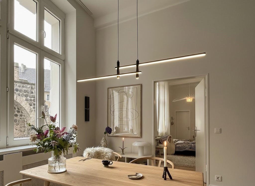 - Multiple Pendants: For long rectangular tables, two or three smaller pendants spaced evenly above the table create a balanced look.