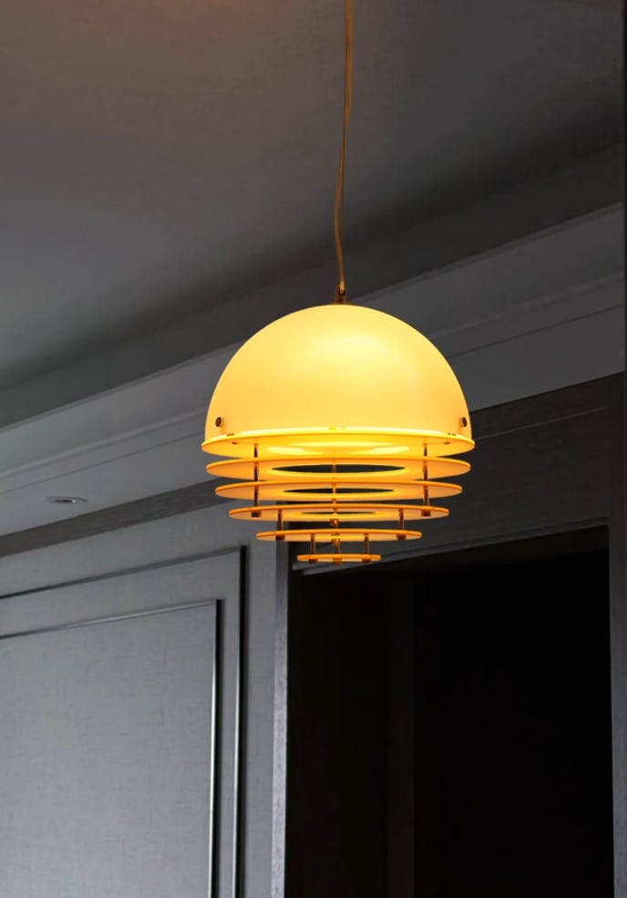 Bring a bold, mid-century modern aesthetic and a splash of color to your kitchen island, dining room, or entryway with this striking pendant light. The design is a sophisticated play on shape and color, featuring a smooth, Half-Dome Diffuser crafted from Opaline or Frosted White Glass, ensuring a soft, glare-free light from above.