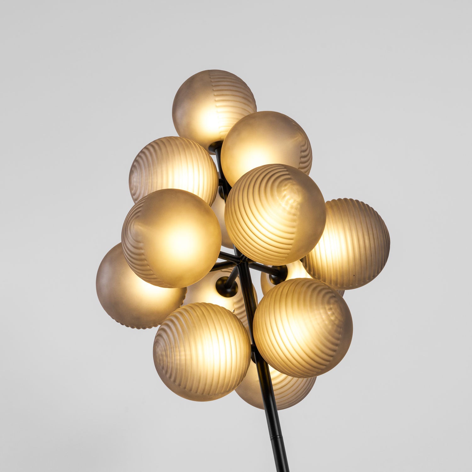 Grape Floor Lamp is an exquisite and unique floor lamp known for its distinctive design and high-quality materials. Its body is made of iron and glass, imparting durability and longevity to the entire lamp fixture. The lamp body is presented in a deep black color, exuding an elegant and mysterious ambiance that seamlessly blends with various interior decor styles.