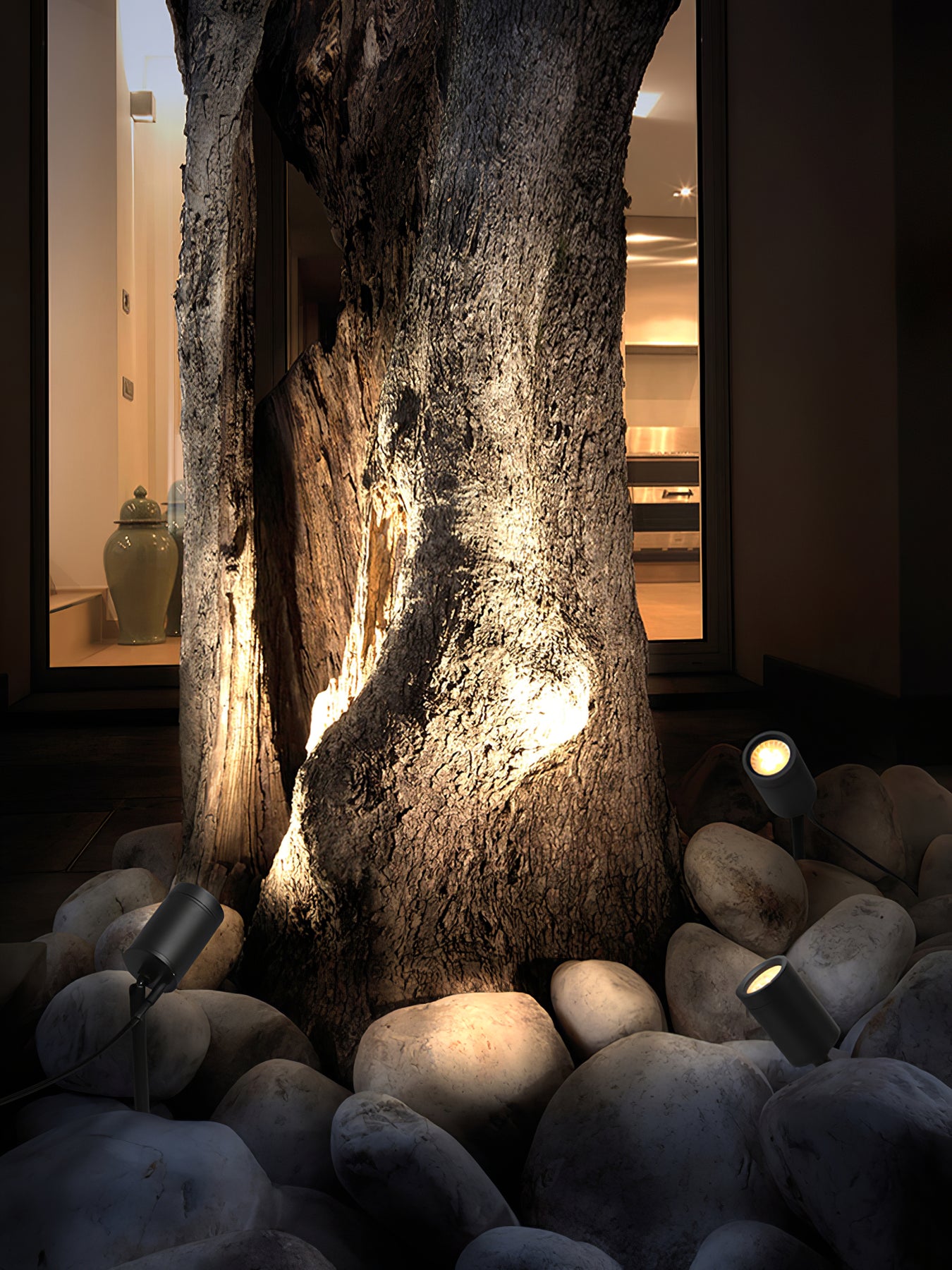 The Vakkerlight Shadow Pierce Ground Spike Light is a sleek and directional outdoor lighting solution designed for precision and durability. Featuring an elongated cylindrical head with an angled cut for glare control, this fixture casts a focused beam ideal for accentuating trees, architectural elements, or garden features. Its minimalist design and weather-resistant construction make it a perfect choice for modern landscapes. Simply stake it into the ground and plug in — effortless installation meets striking illumination, only from Vakkerlight.