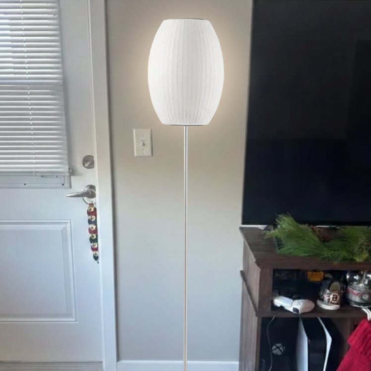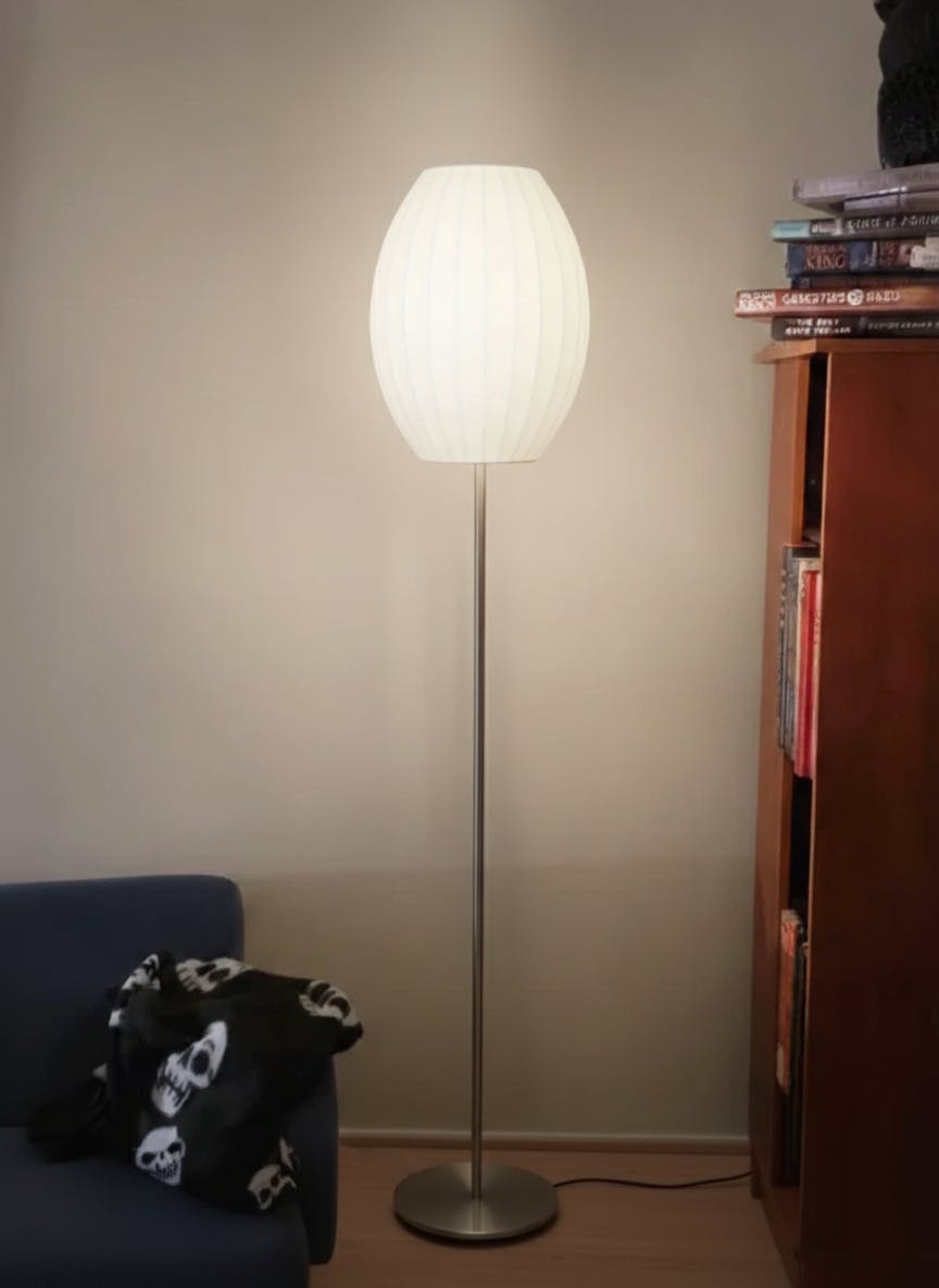The Nelson Floor Lamp adds a touch of softness and brightness to your interior with its elegant spherical design. Crafted by George Nelson in 1952, this lamp features a sturdy yet lightweight steel frame for a delicate, floating aesthetic. Perfect for ceiling, floor, table, or wall mounting.